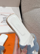 HM 25 Oran Sandal White Calfskin Blue Denim