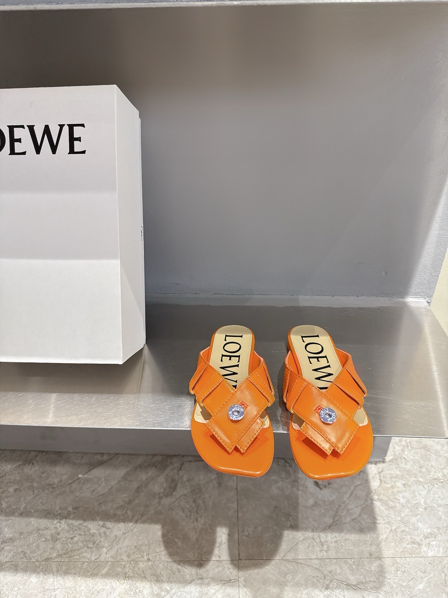 Loewe 25 Toy Panta Toe Thong Orange Sheepskin 317258