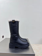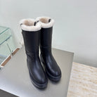 MiuMiu 25 platform boots black calfskin wool 522429