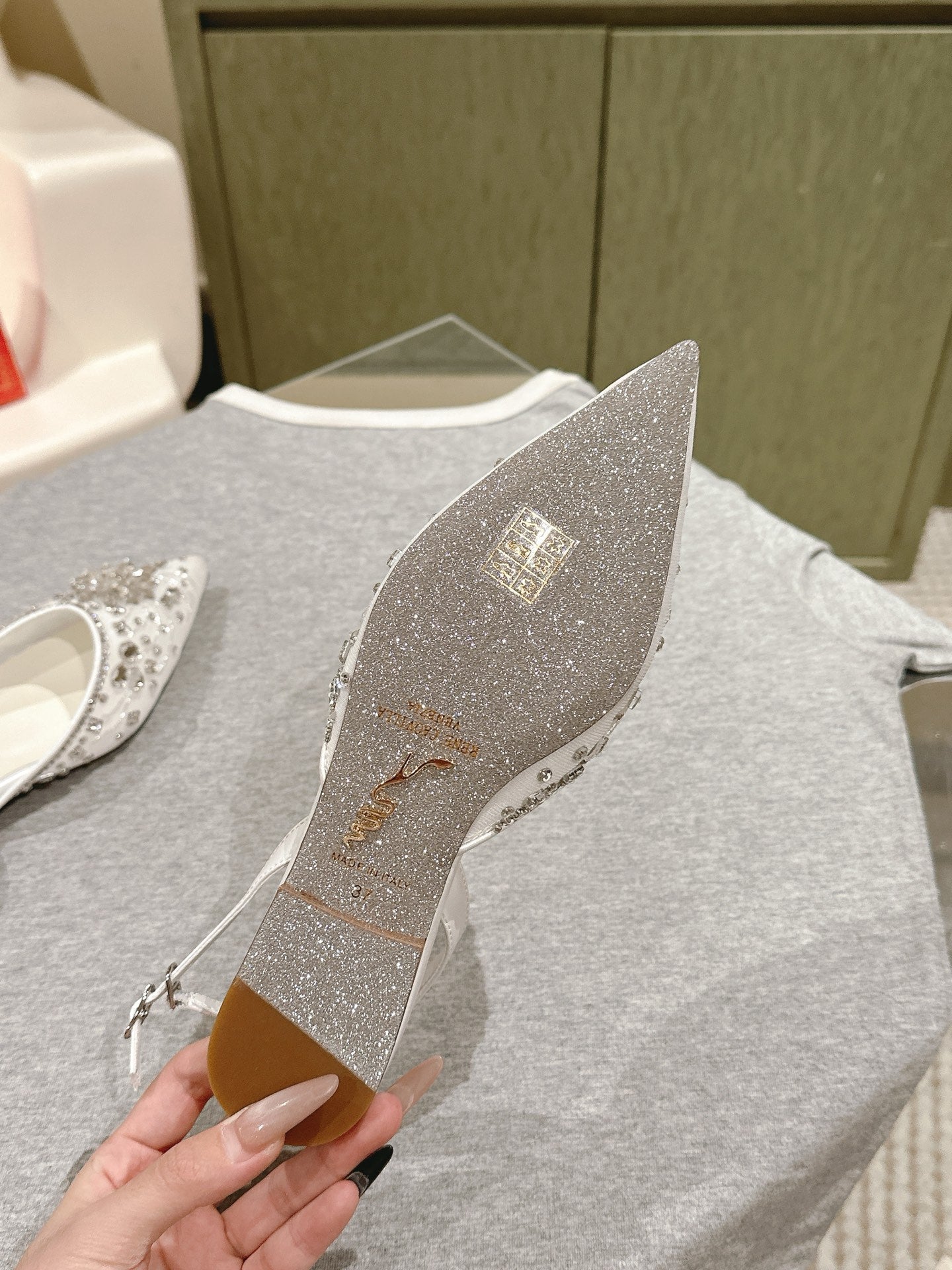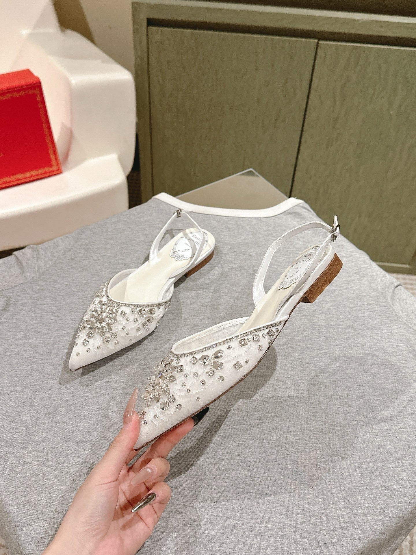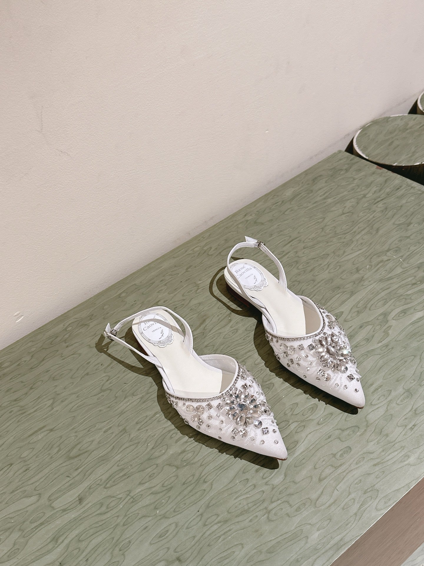 RC 25C Slingback Flat Shoe White Silk Rhinestones 268075