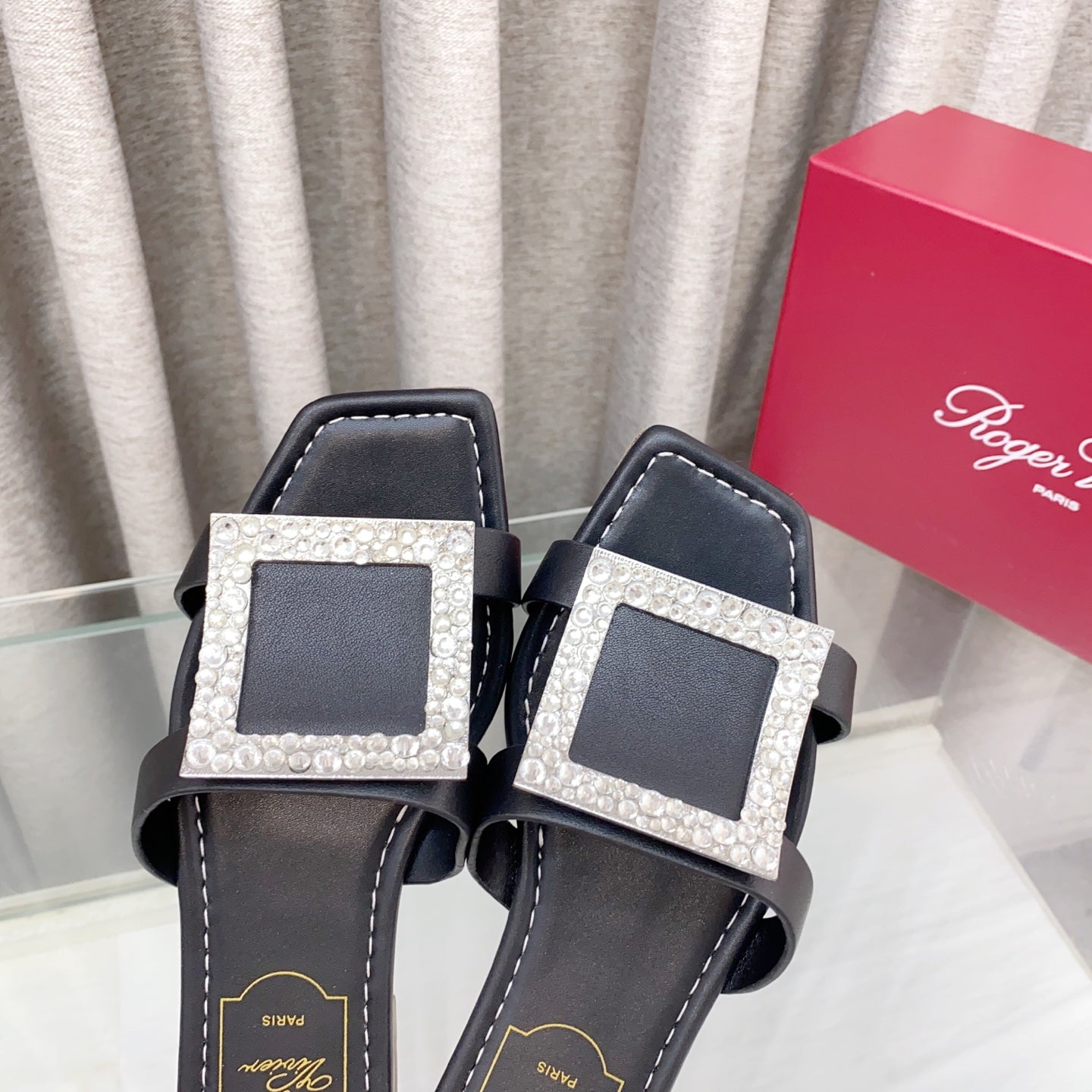 Viv 25 Diamond Flat Slippers Black Cowhide 283038