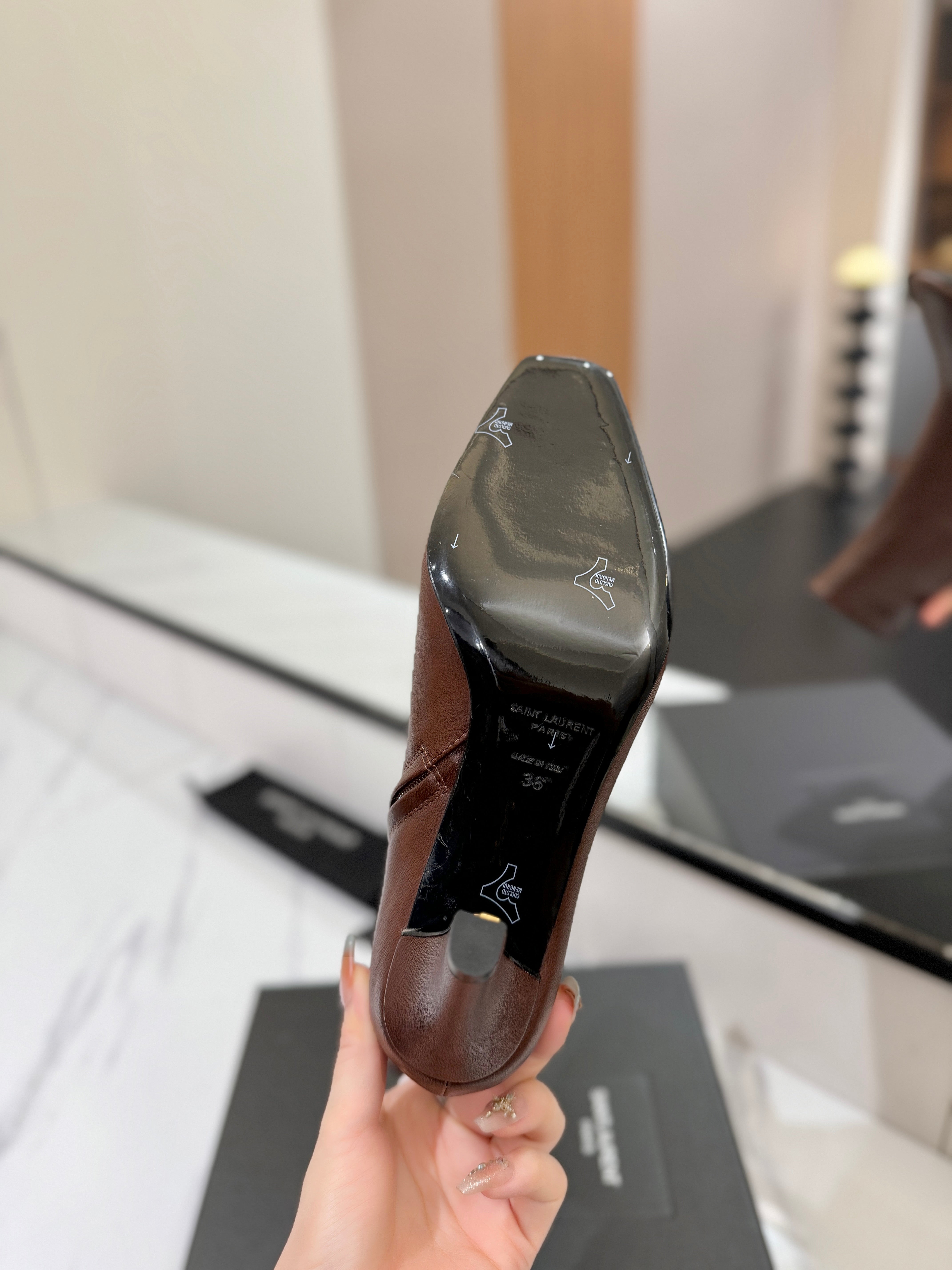 YSL 25 High-heeled Boot Brown Cowhide 520776