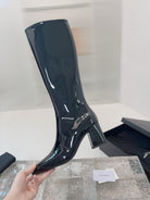 YSL 25 High Heeled Long Boot Black Patent Leather 522261