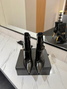 YSL 25 Metal Stiletto Martin Boots Black Gold Cowhide 520779