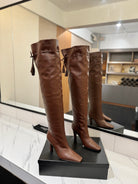 YSL 25 Over-the-Knee Martin Boot Brown Calfskin 520783