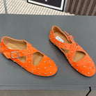 Alaia 2025 Criss Cross With Stud Ballet Flats Orange Suede 293215