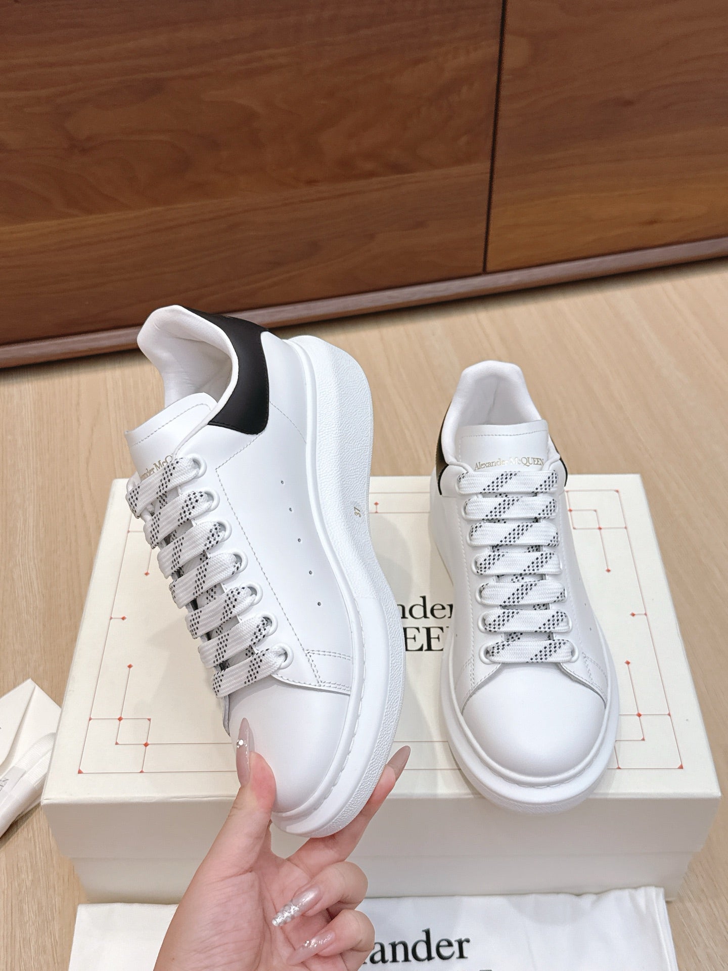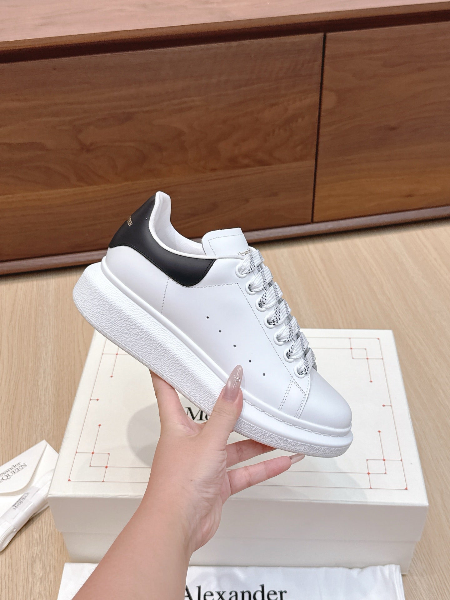 Alexander McQueen Sneaker White Black Cowhide 463111