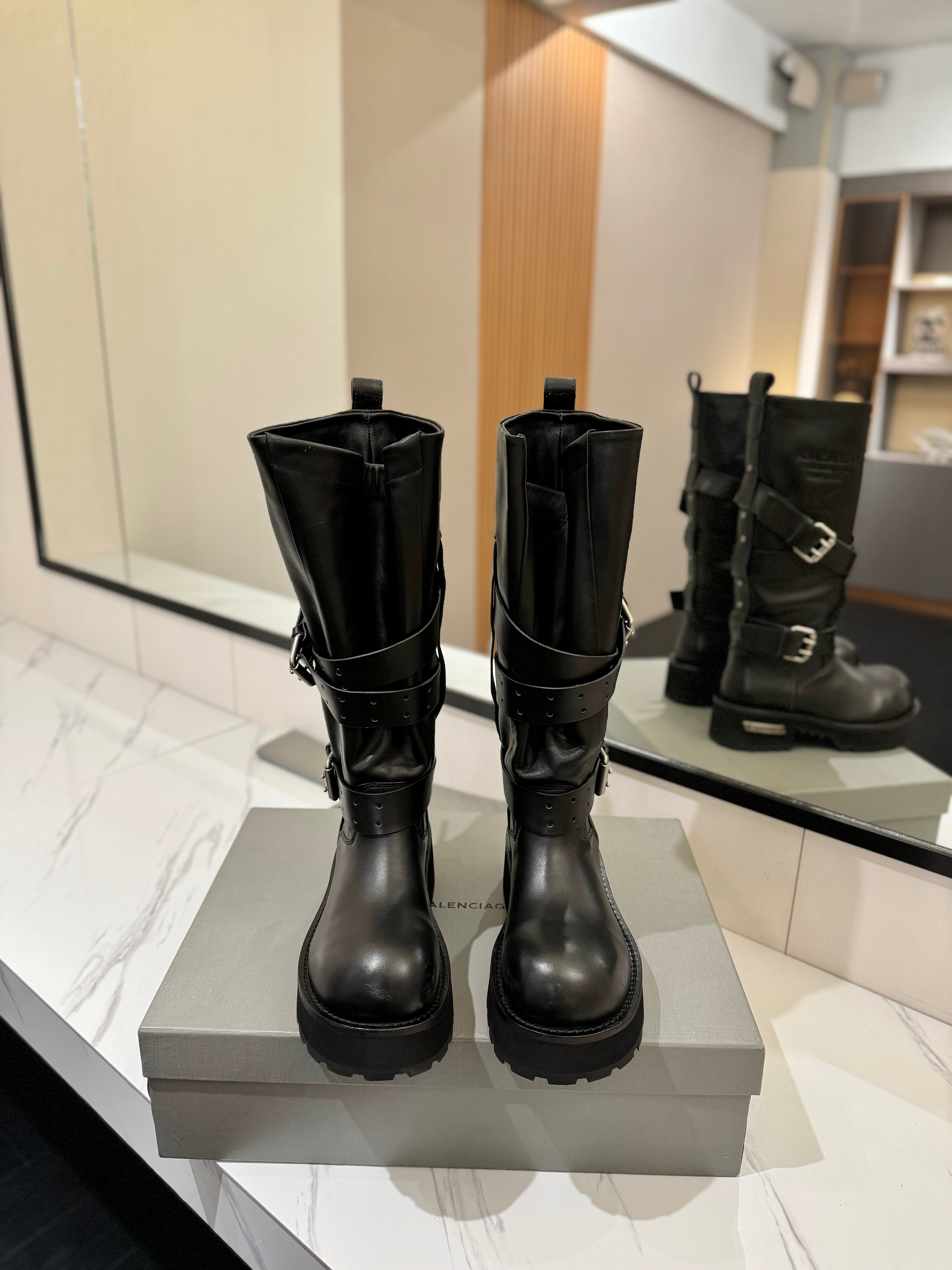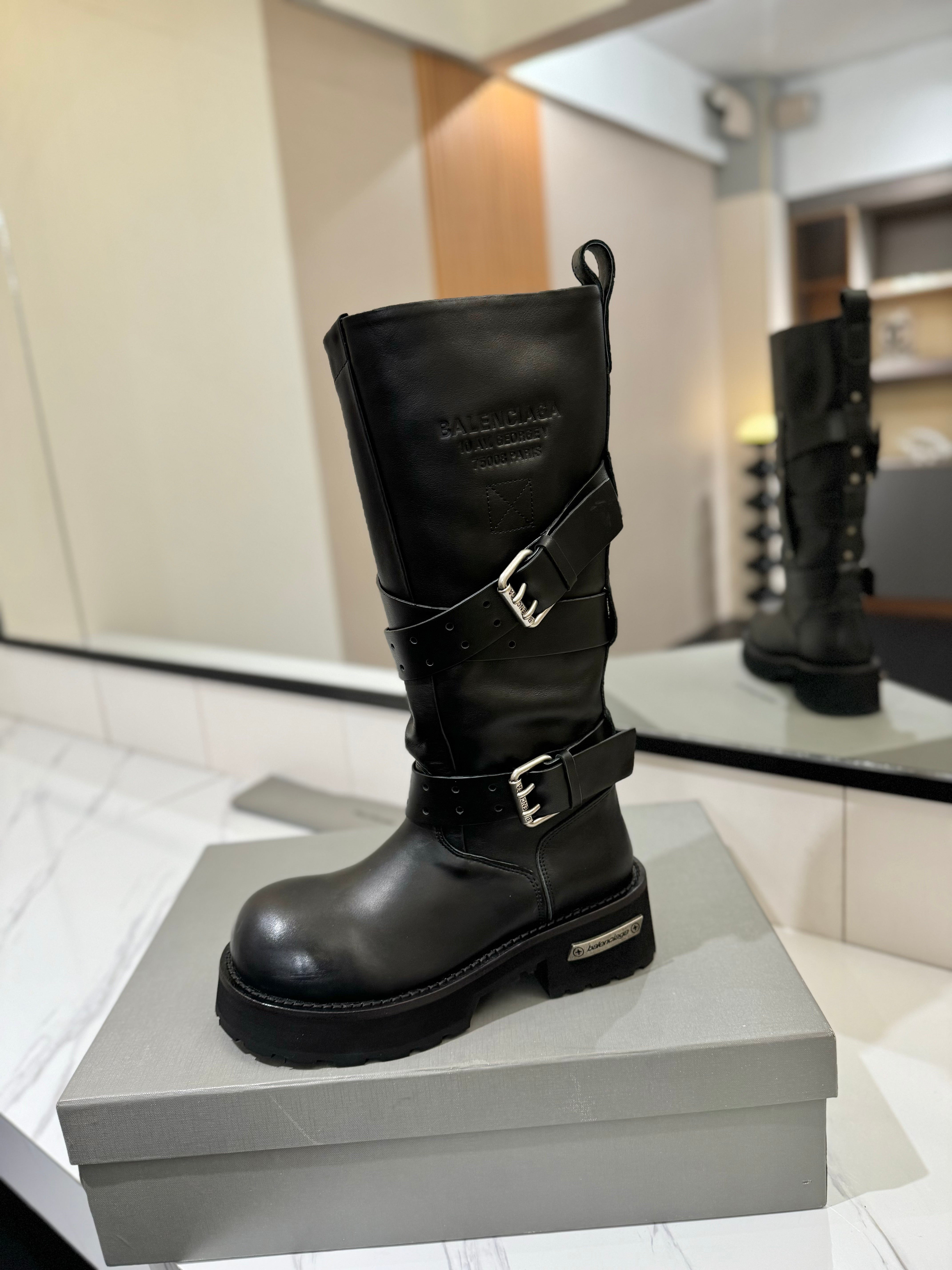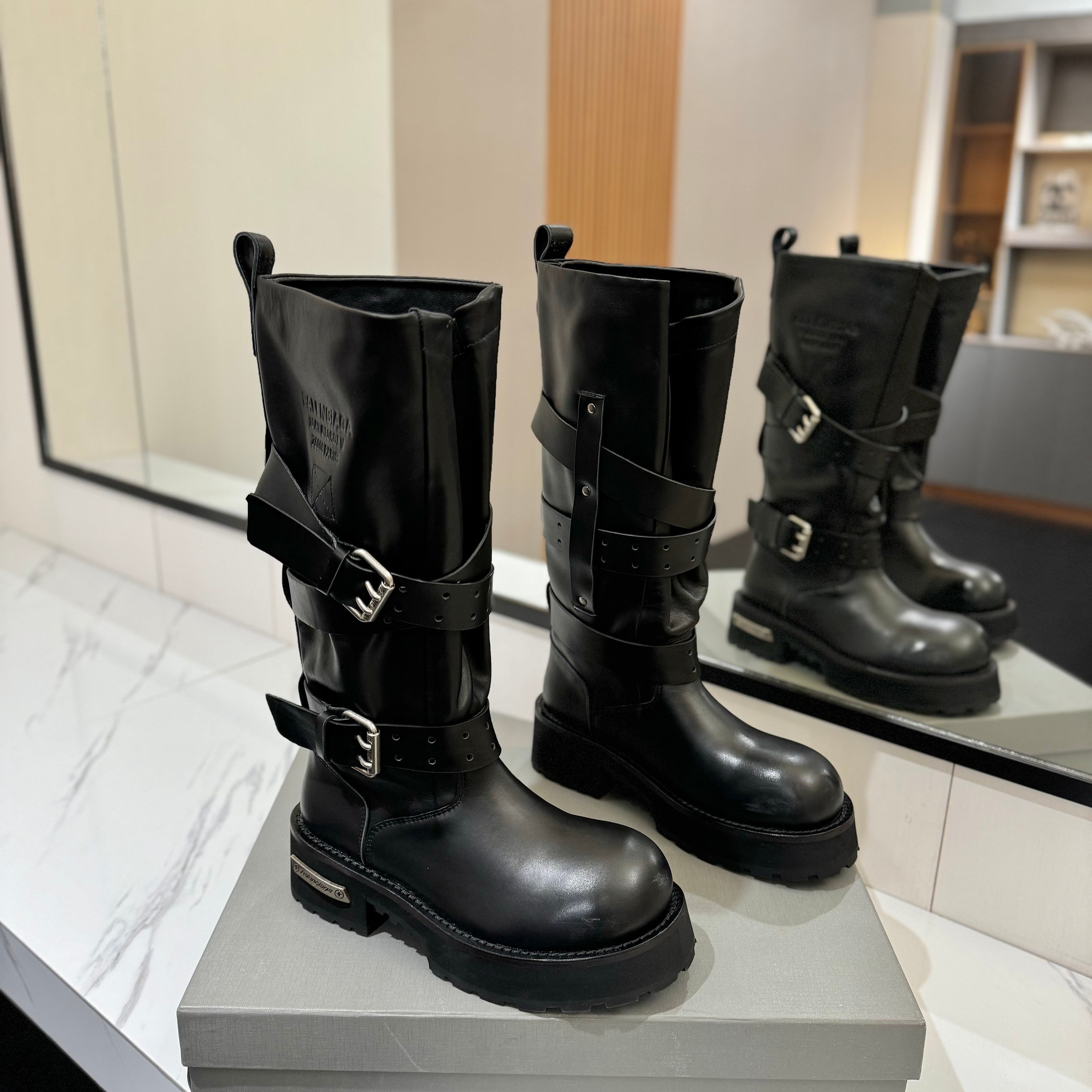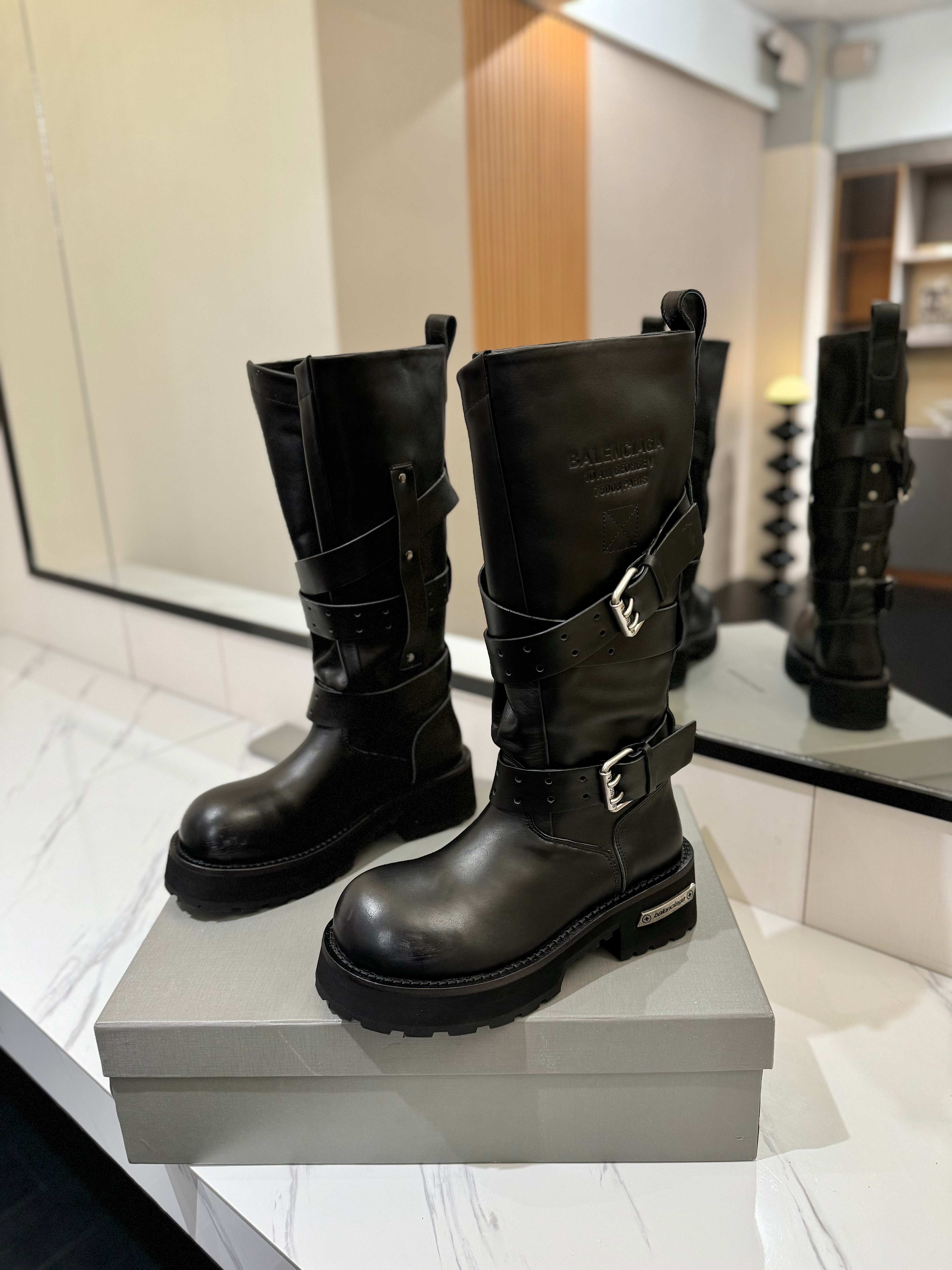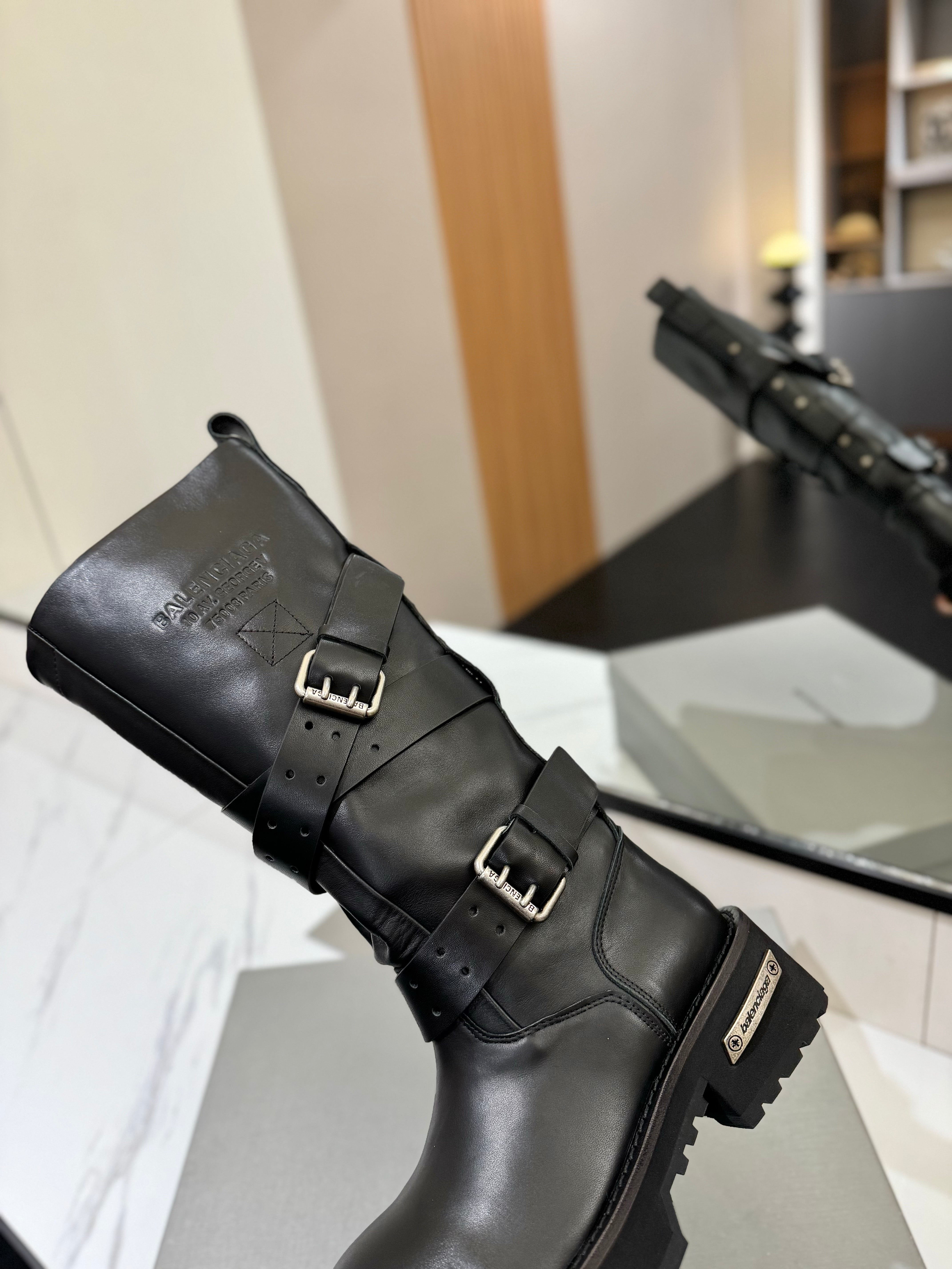 Balenciaga 25s buckled high boots black calfskin 467611