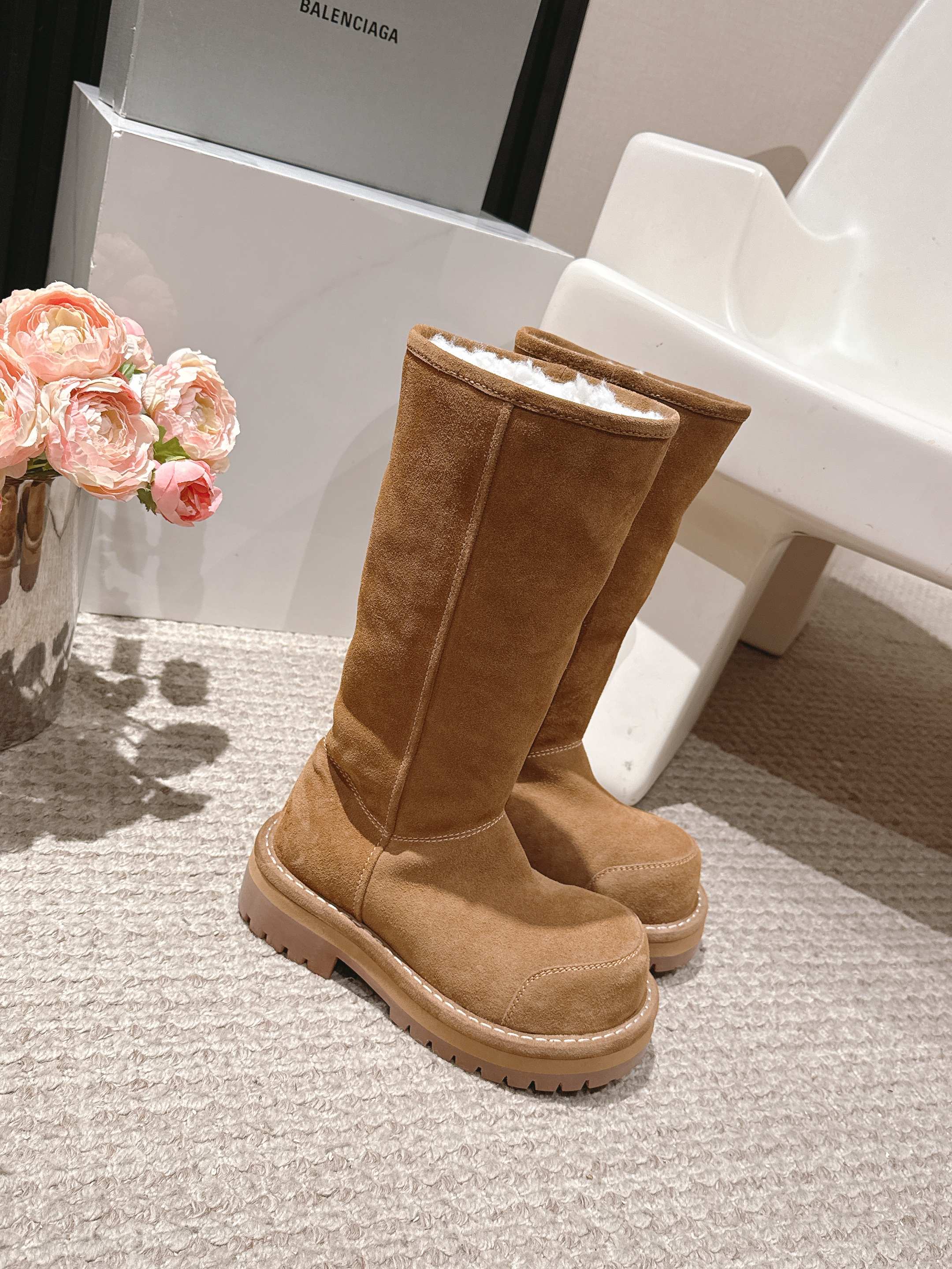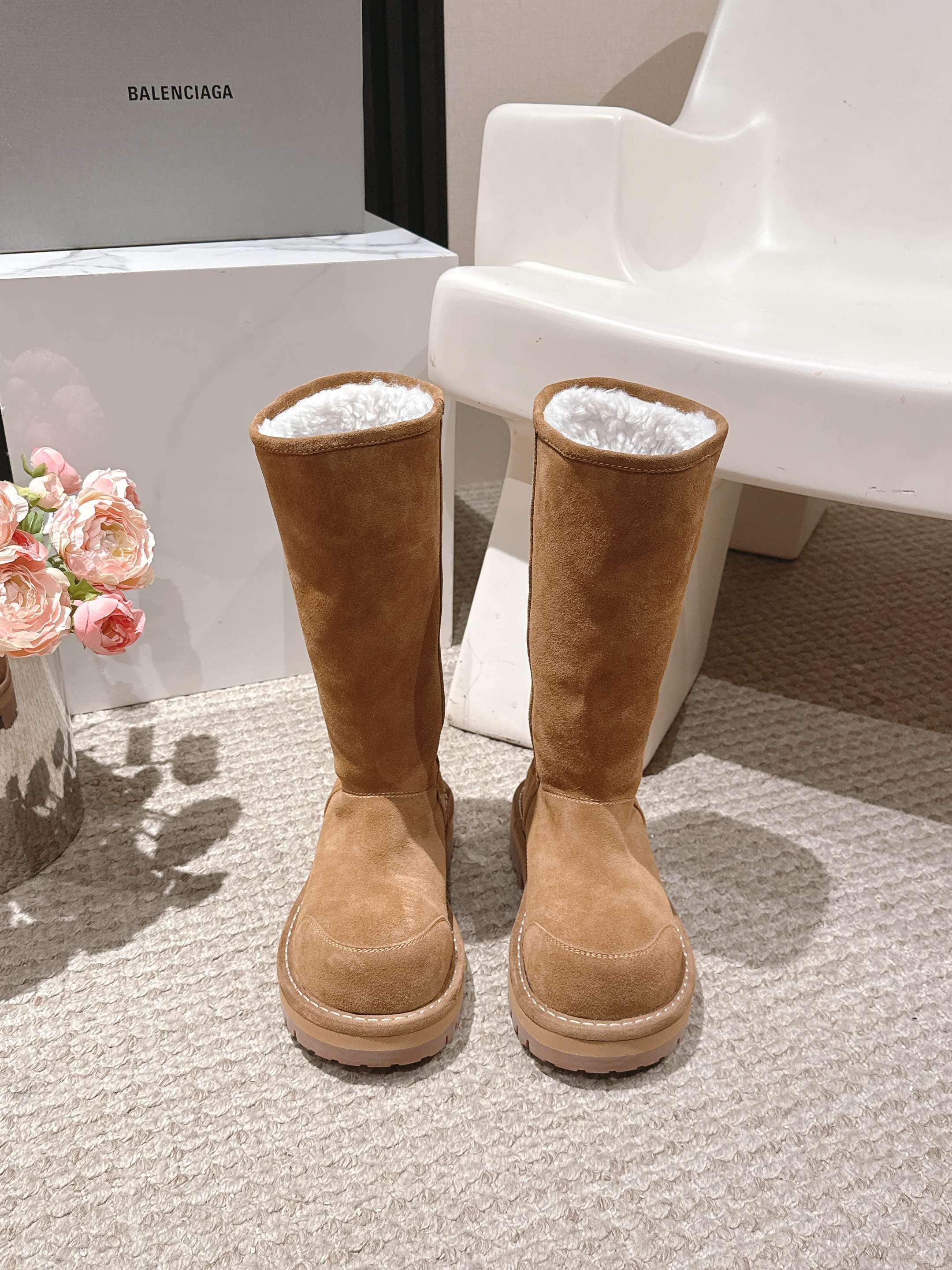 Balenciaga 25s snow boots brown suede wool 467187