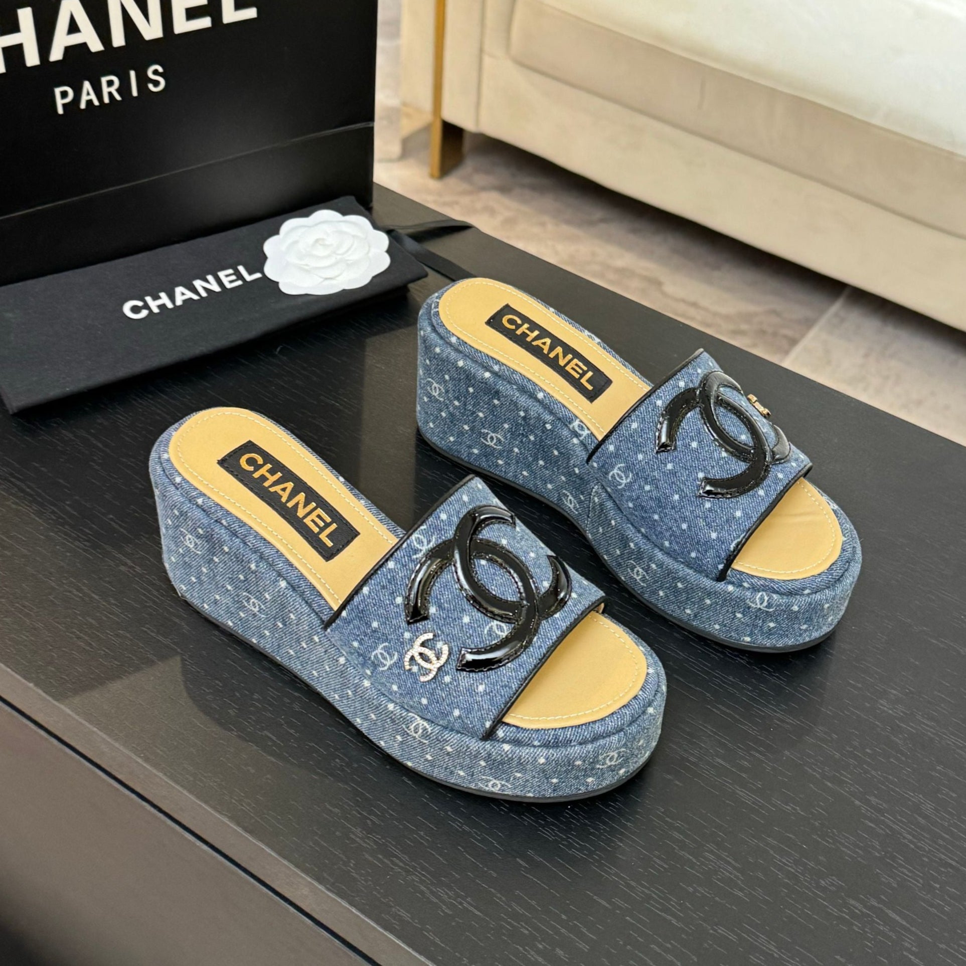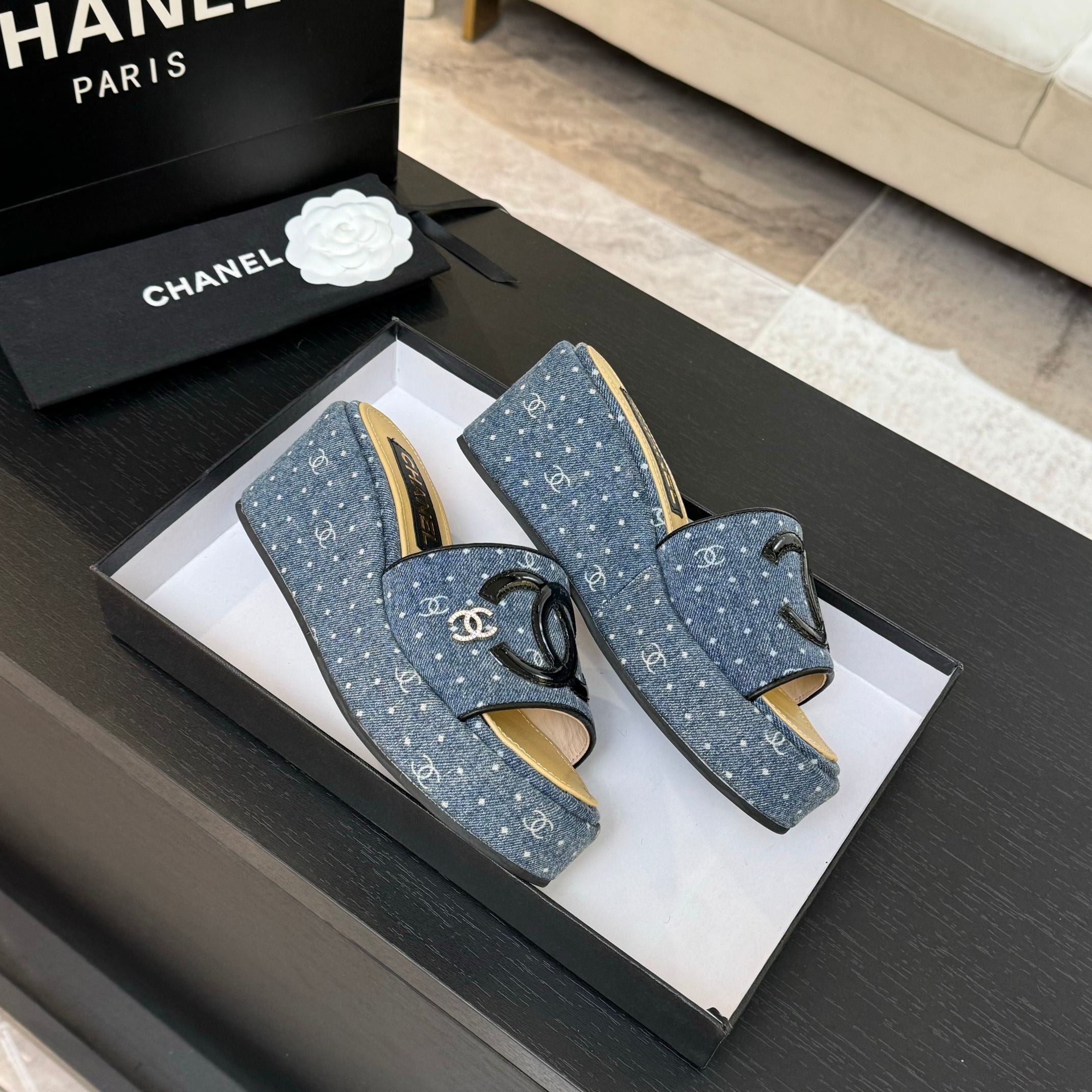 CC 25C Platform Slide Sandals Navy Blue Fabric 213158