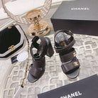 CC 25C Three Strap Sandal High Heel Black Sheepskin 213350