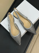 J'Adior Slingback Black Silver-tone Cotton Microbeads