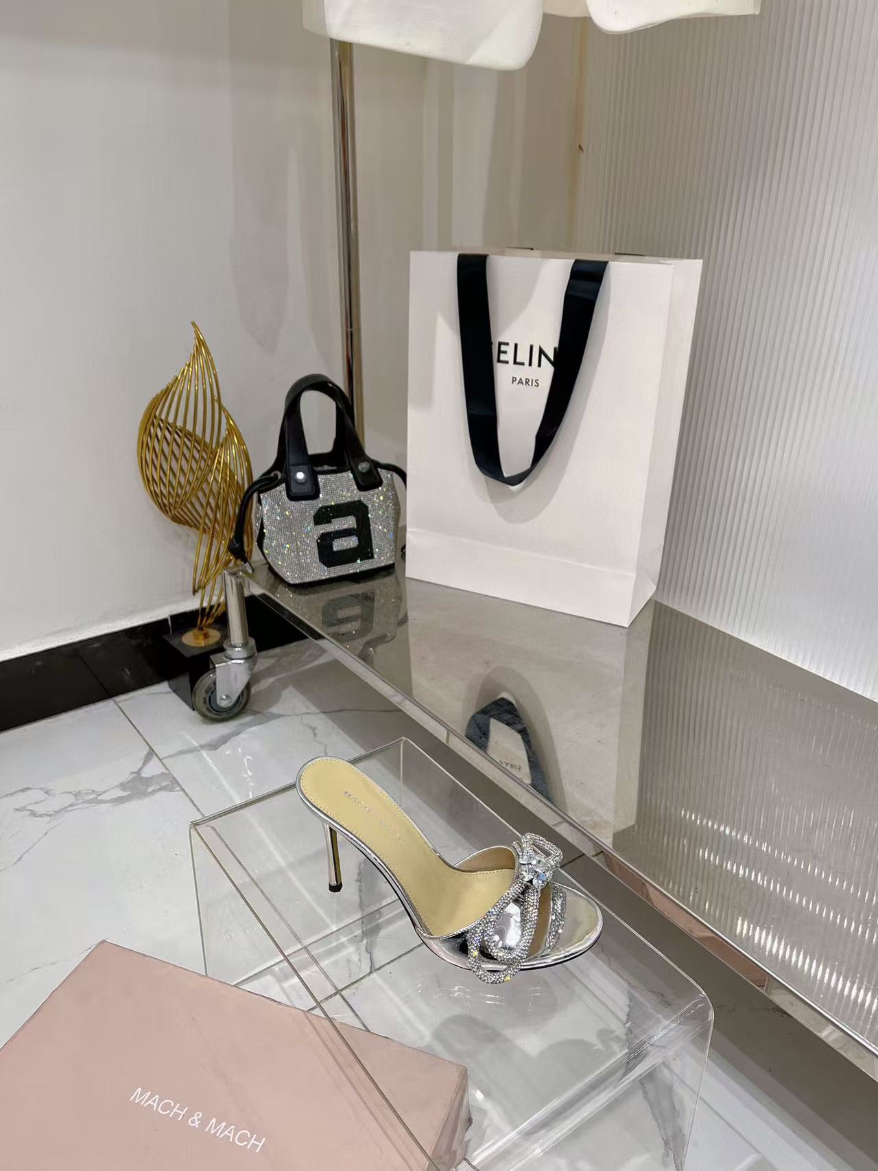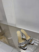 Mach & Mach Double Bow Metallic Mules 65mm Silver calfskin