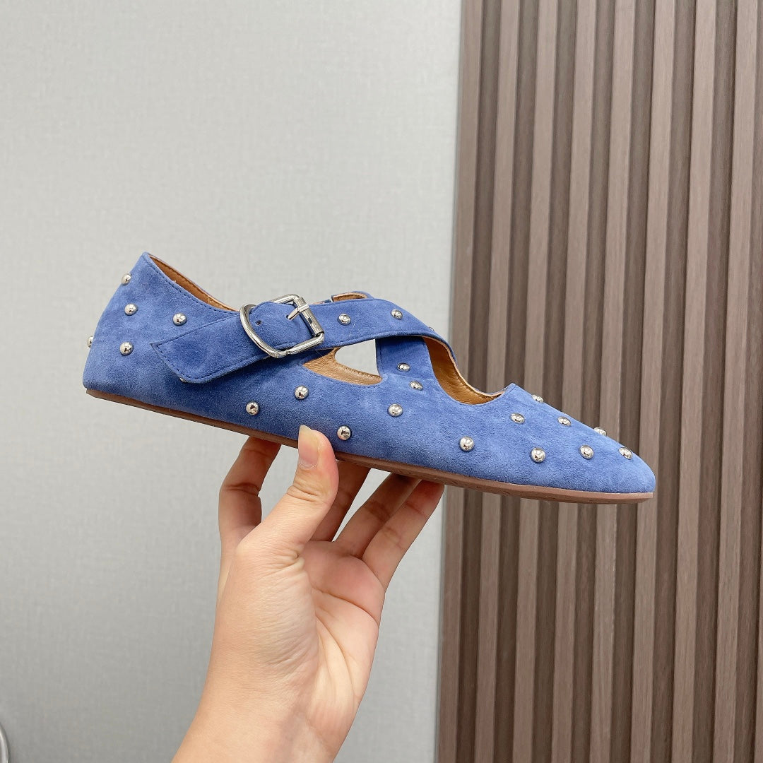 Alaia 2025 Criss Cross With Stud Ballet Flats Royal Blue Suede 293211