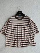 Prada 25 Striped Round Neck T-shirt Beige Brown Cotton