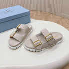 Double Buckle Strap Slides 20 Light Grey Suede