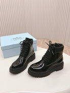 PRA LACE-UP BOOTS GLOSSY BLACK CALFSKIN
