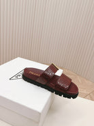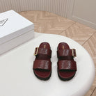 PRA CROCODILE MOTIF SLIDES SANDALS WINE CALFSKIN
