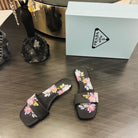 PRA PRINTED SLIDES SLIPPERS BLACK SATIN