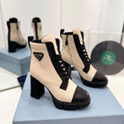 PRA RE-NYLON AND LEATHER BOOTIES PASTEL PINK