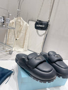 PRA SOFT PADDED NAPPA SHEARLING MULES BLACK LAMBSKIN