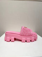 PRA THICK-SOLED CROCHET SANDALS PINK WOVEN FABRIC