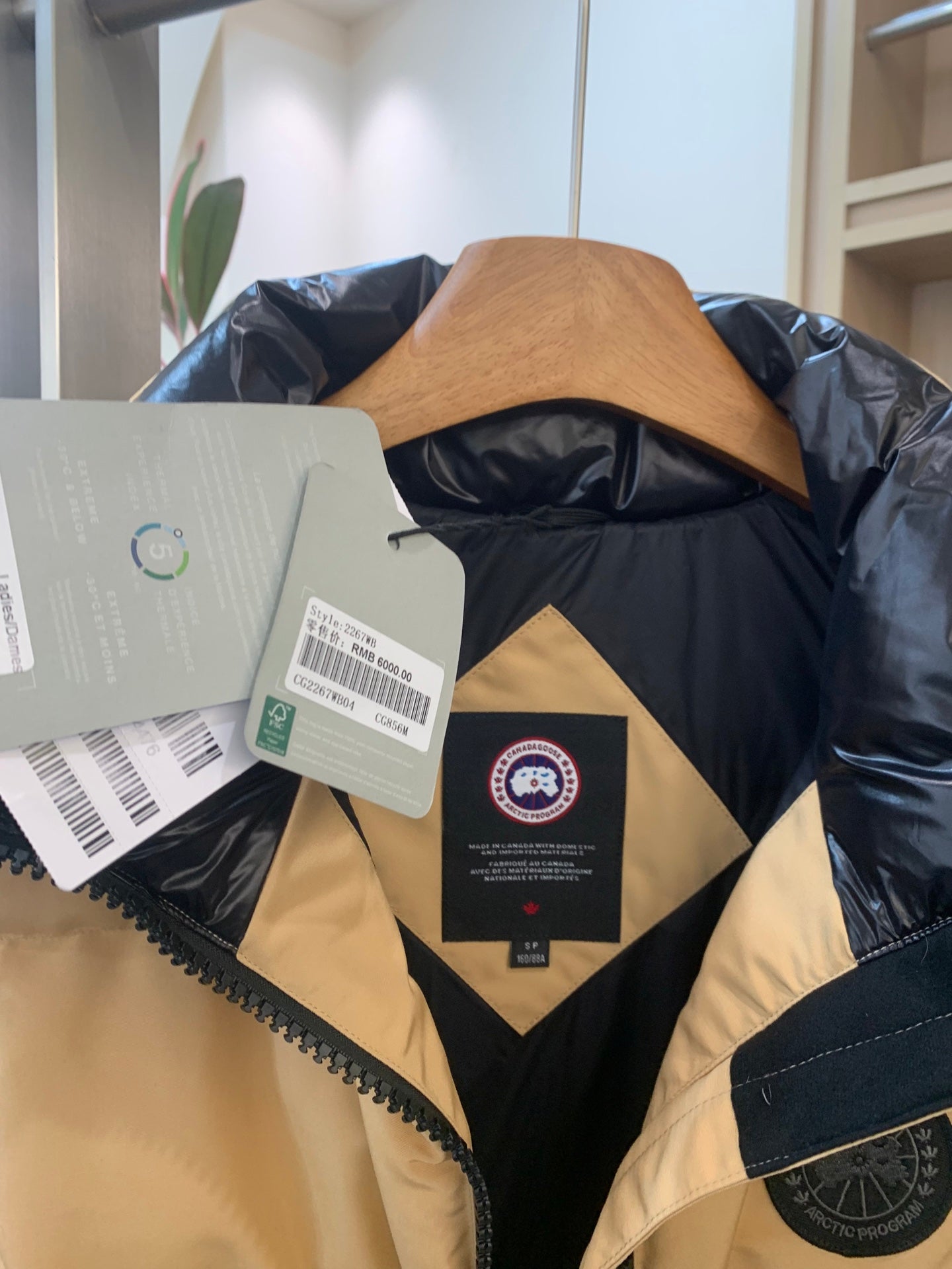 C. Goose Hooded Down Vest Beige Polyester 0004