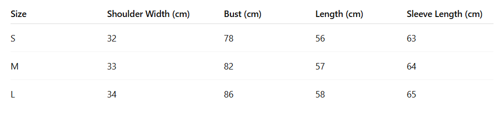 - Size : S, M, L