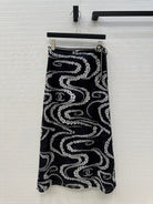 CC 25 Wave Pattern Long Skirt Black Silk Cotton