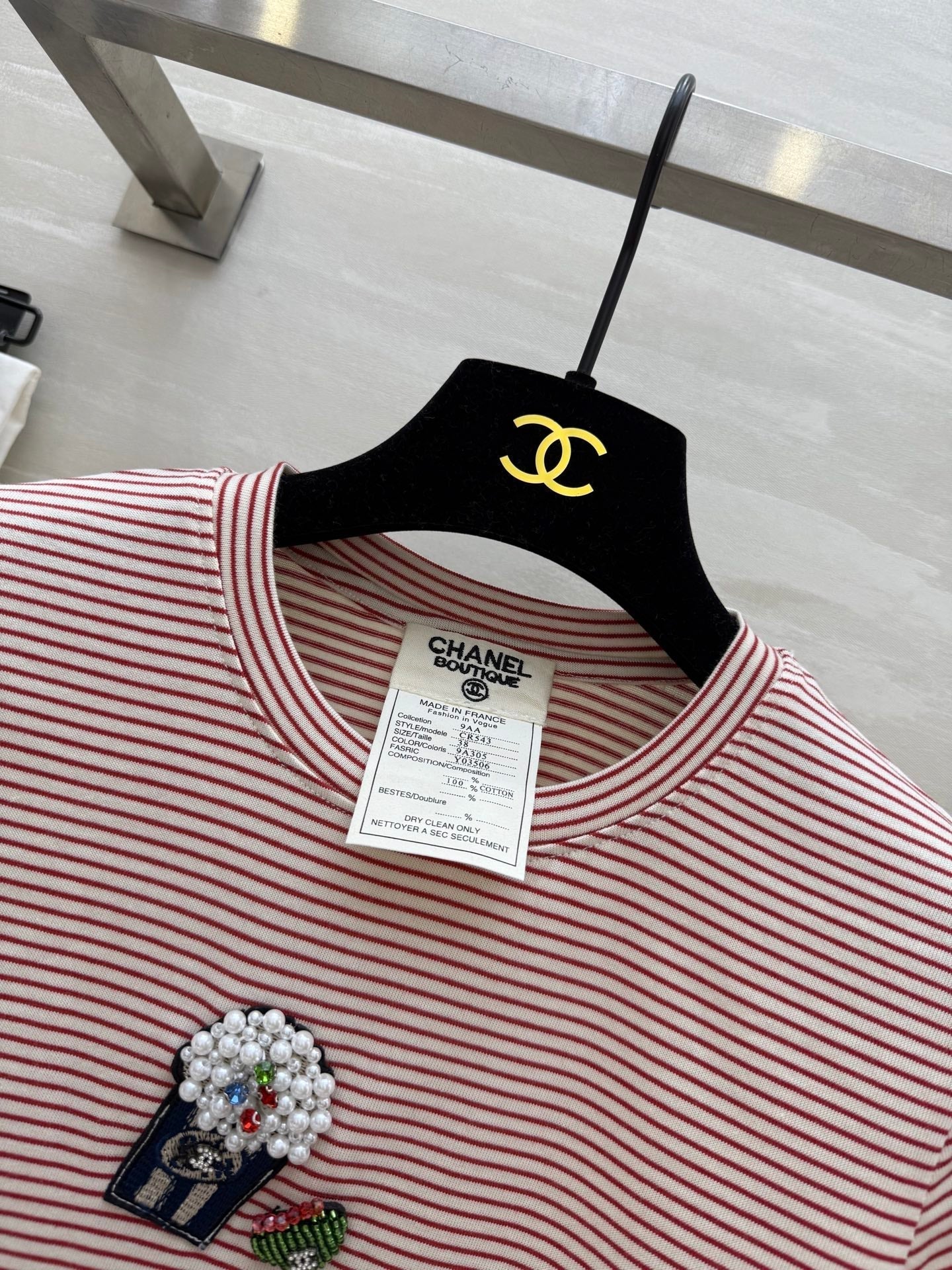CC Beaded T-shirt Pink White Cotton