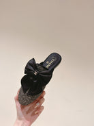 CC JEWELED MULE WITH SILK BOW AND BLACK LAMBSKIN