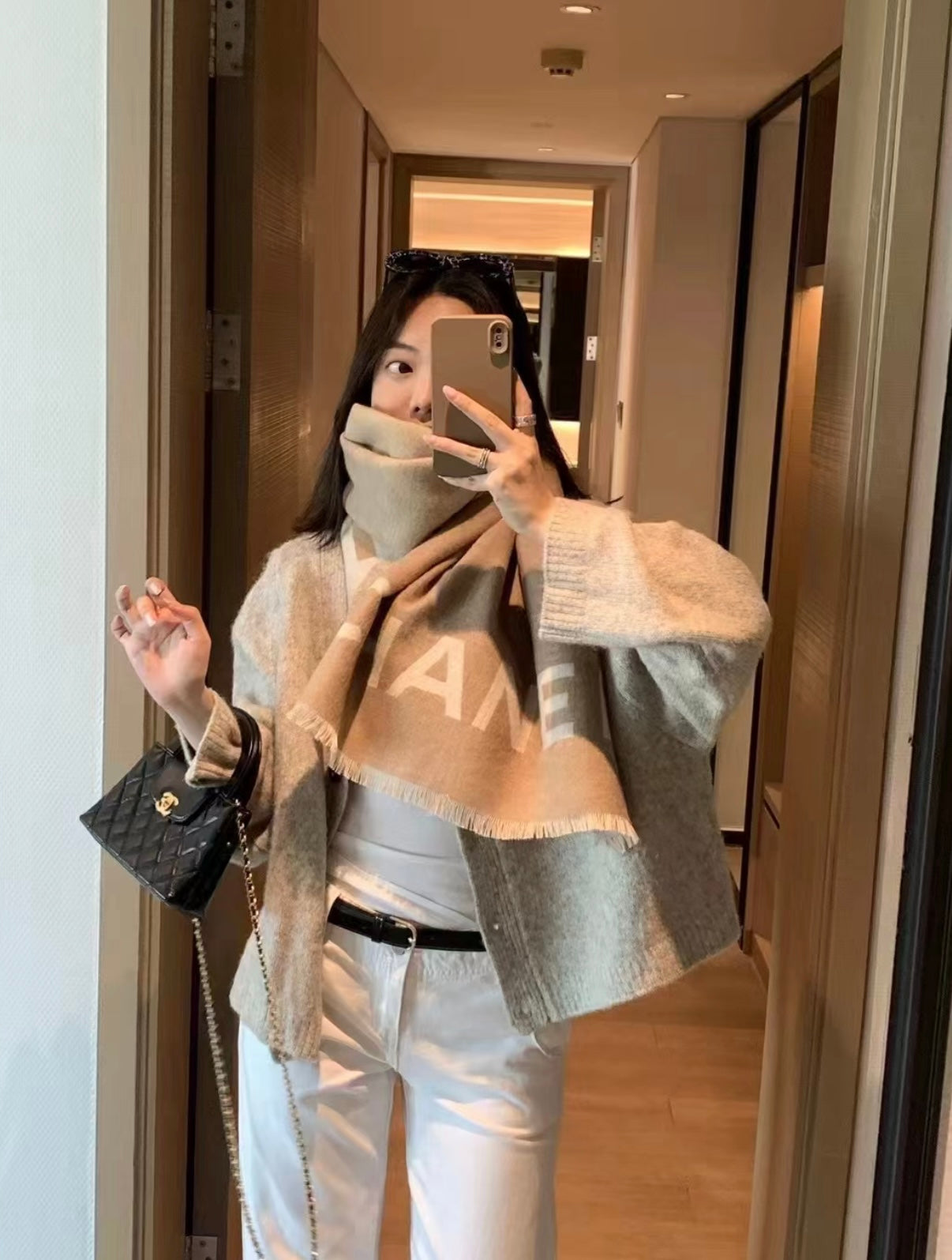 CC Scarf 200 CM In Brown Mix White Cashmere 401298