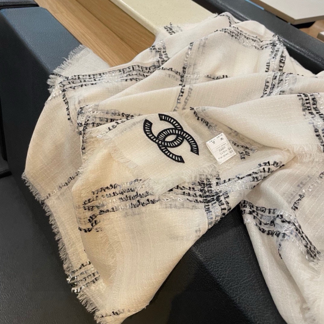 CC Scarf 200 CM In White With Black Stripes Cashmere 385515