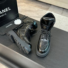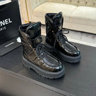 CC Short Boots Glossy Black Quilted Cowhide