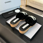 CC Slippers Black Wool And Calfskin