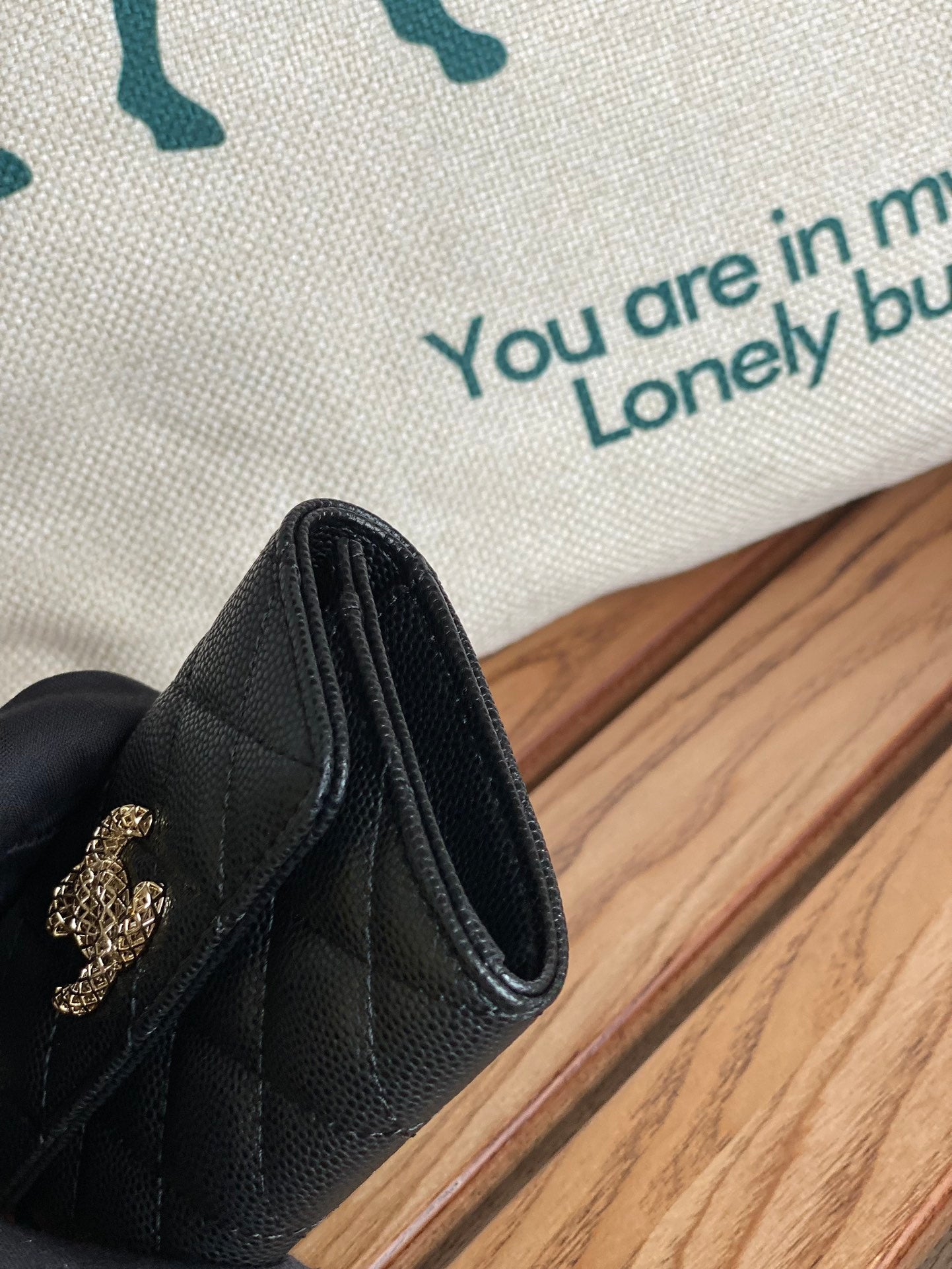 cc small wallet 11cm black caviar light gold hardware