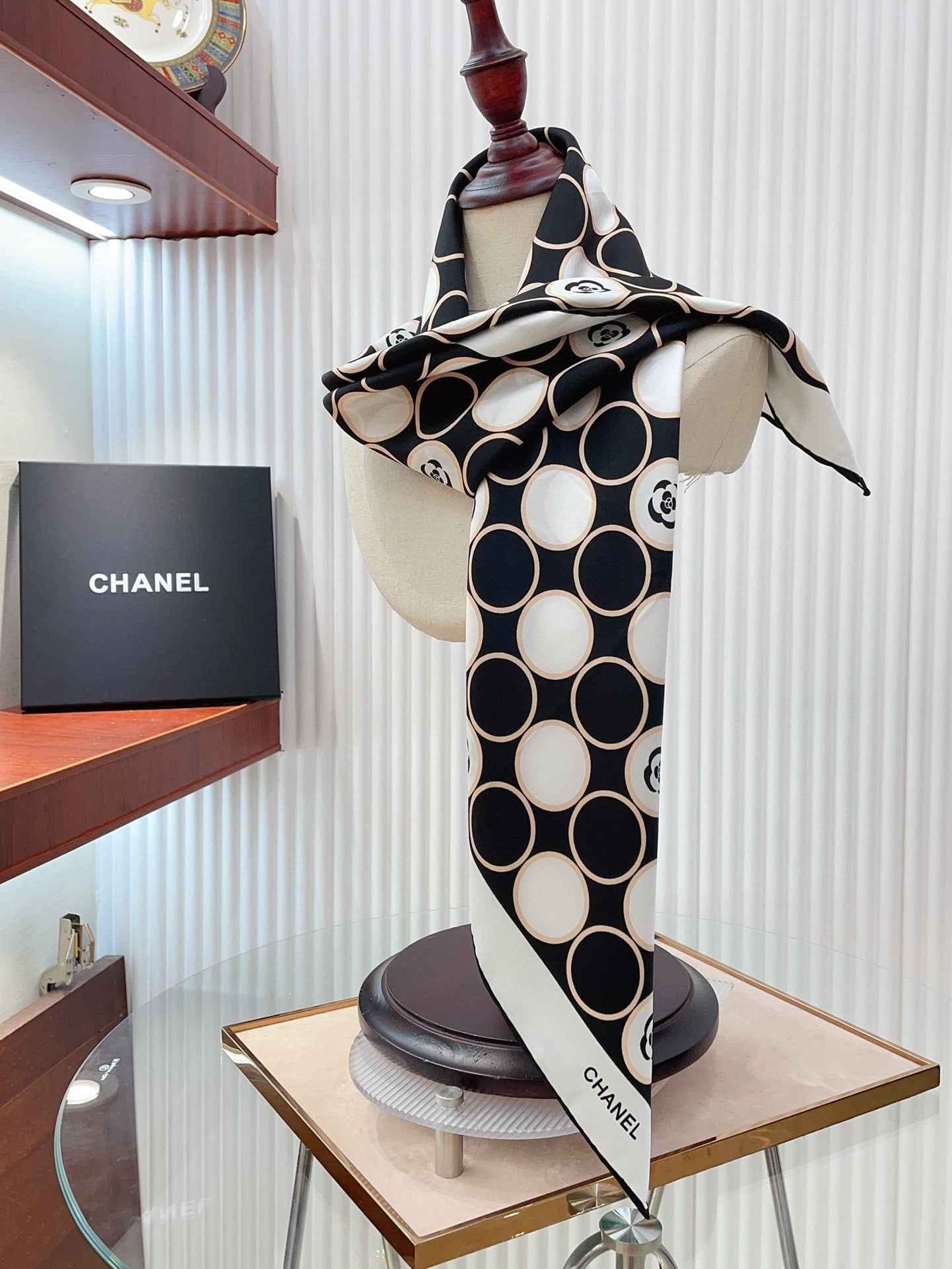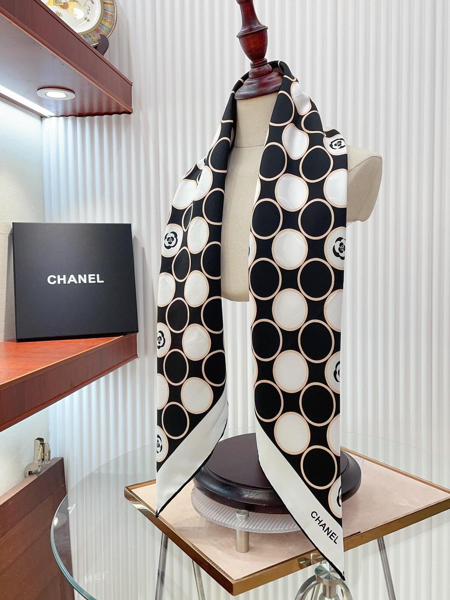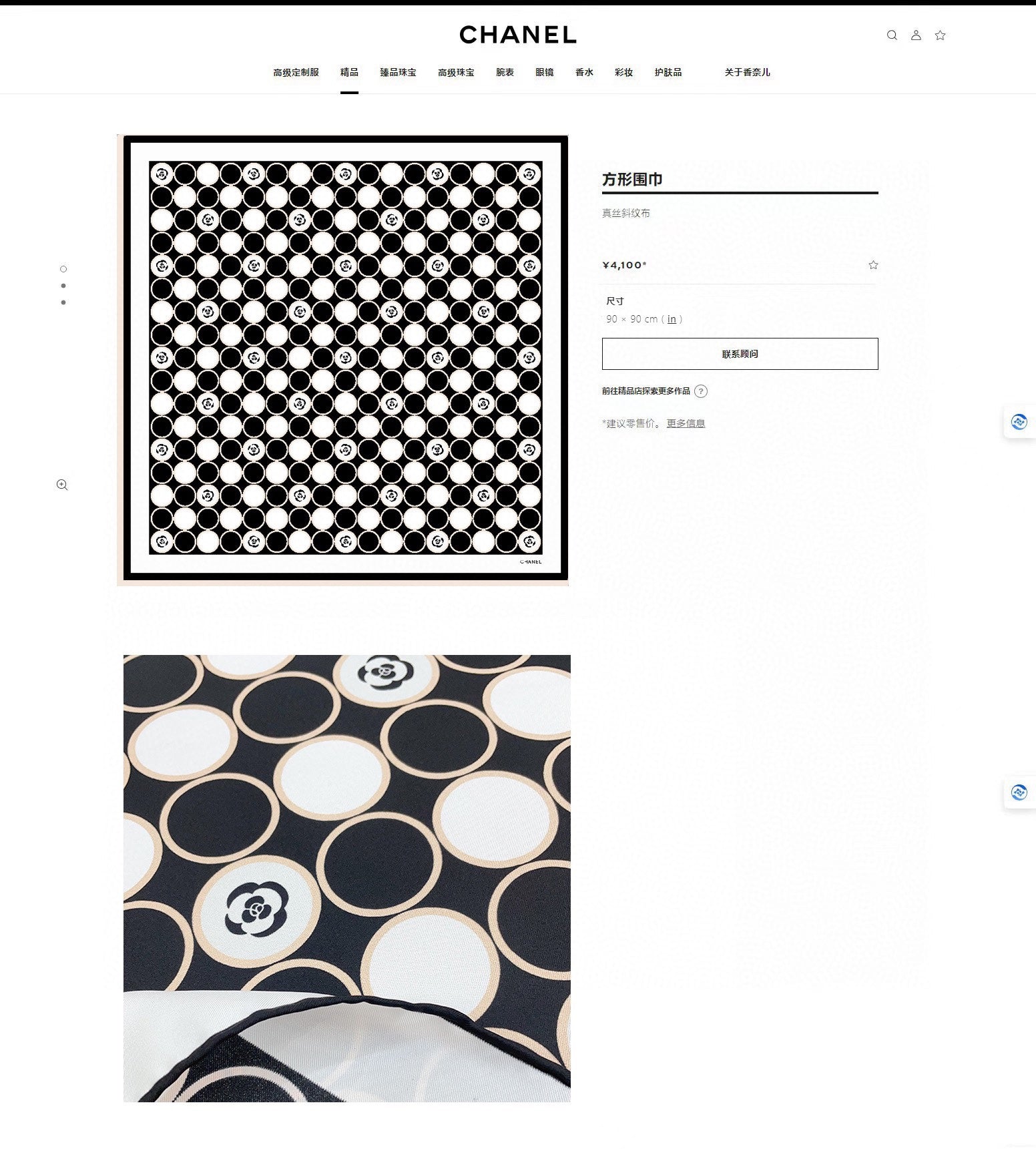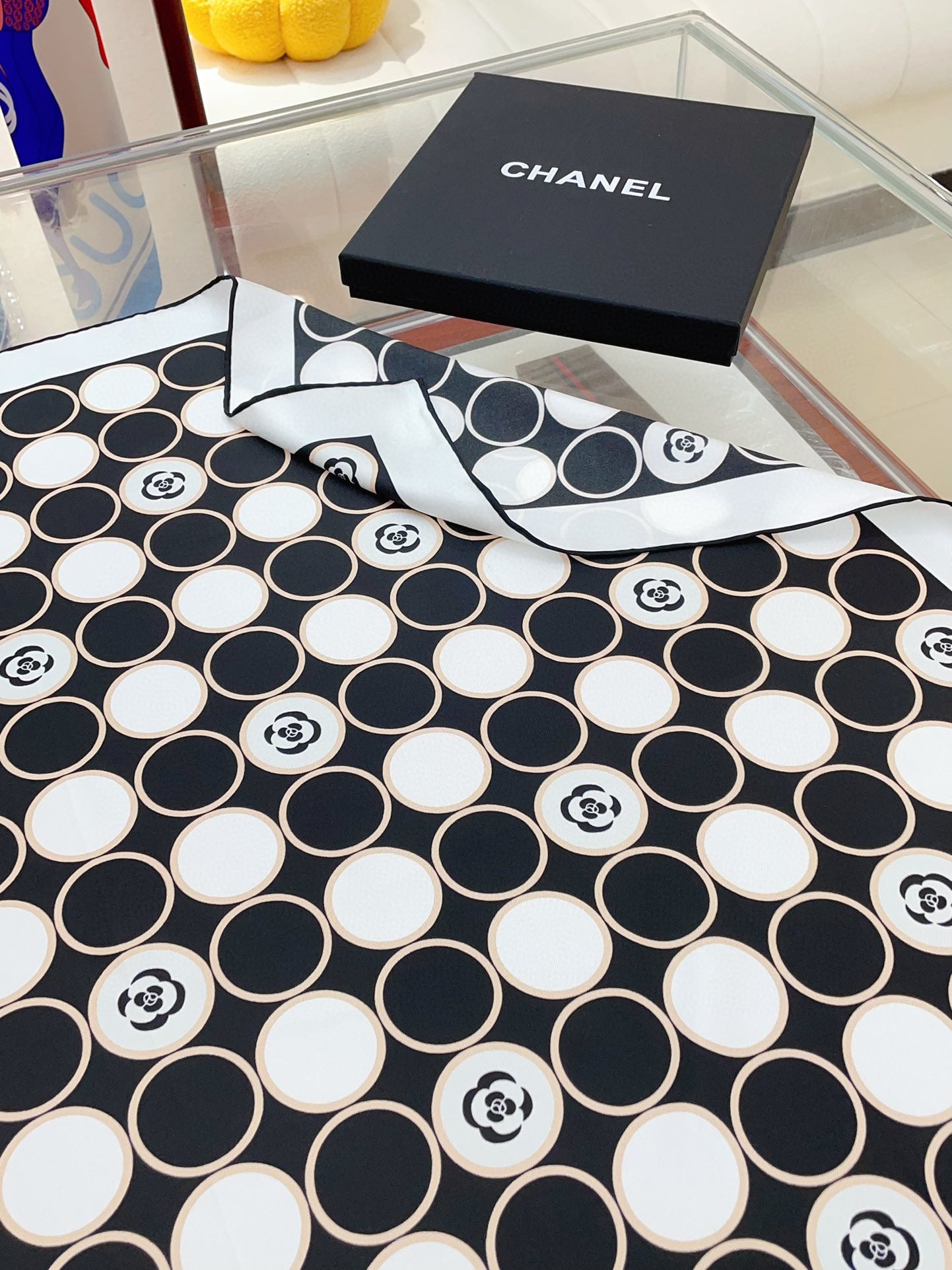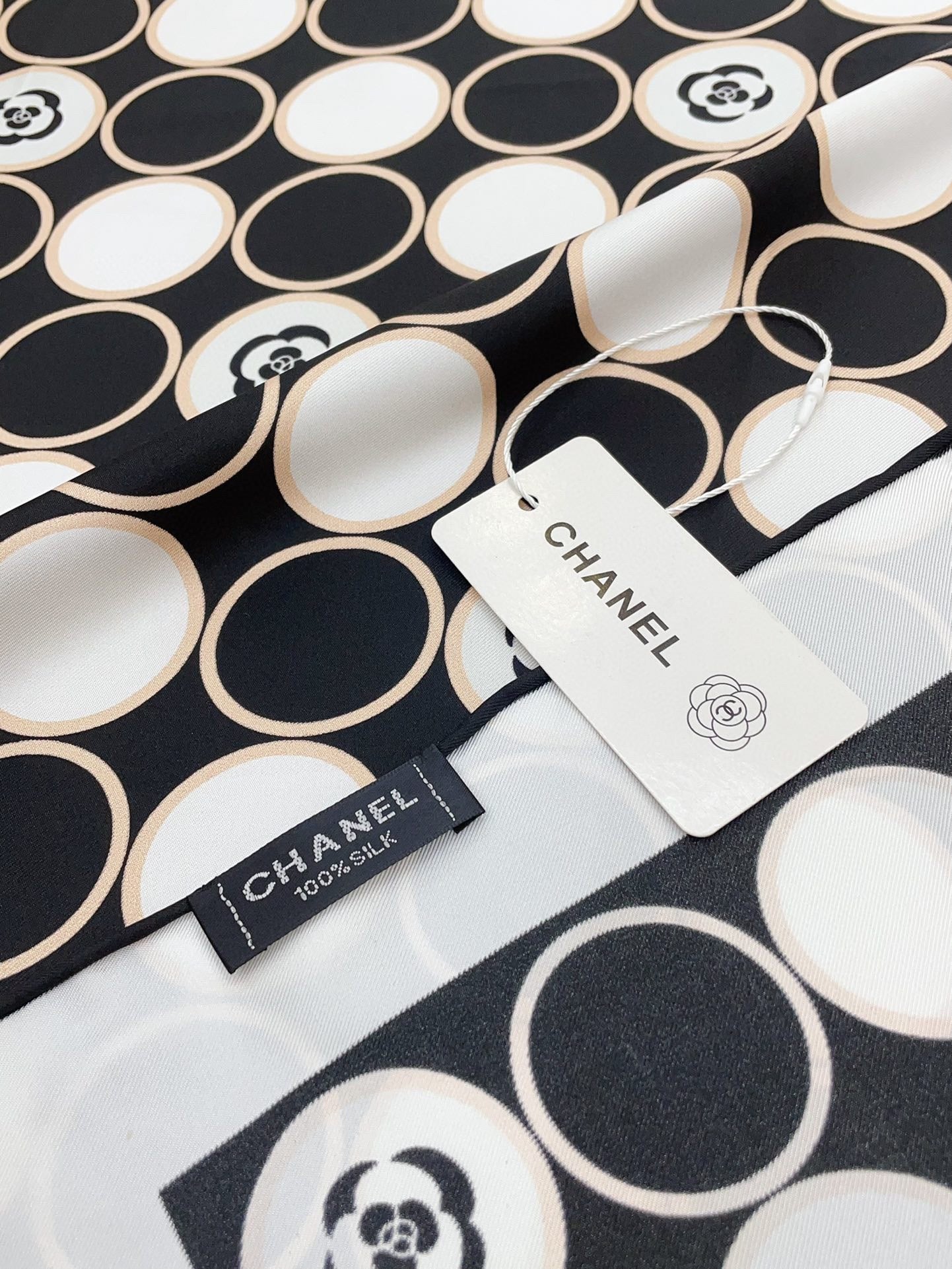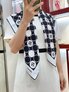 CC Square Scarf 90 CM In Black Mix White Silk Twill 350415