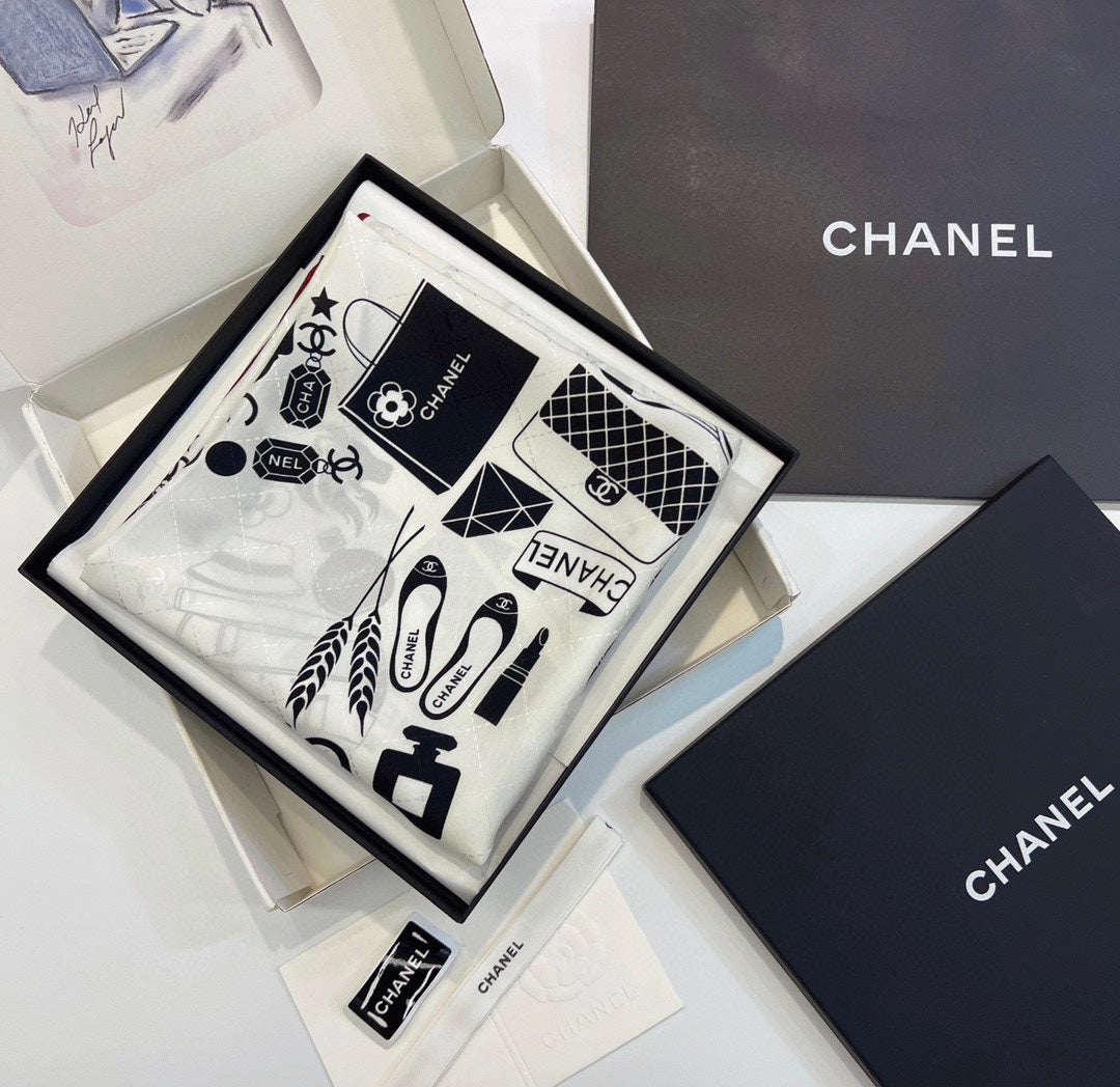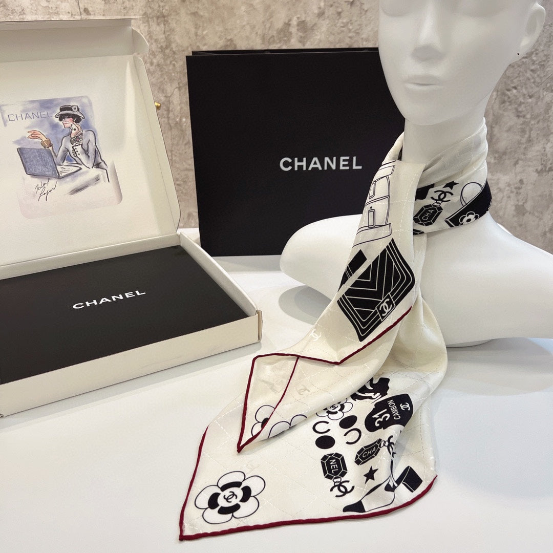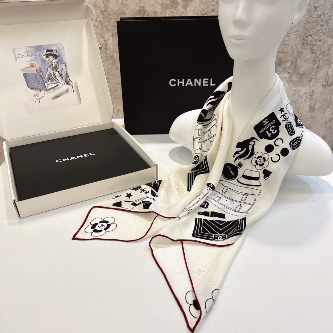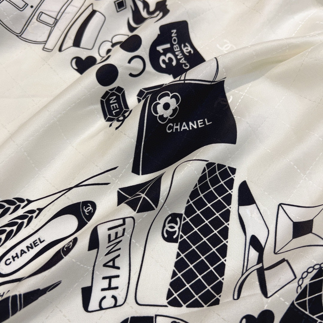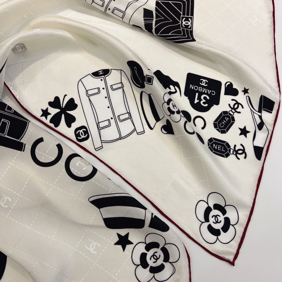 CC Square Scarf 90 CM In White Mix Black Silk 288716