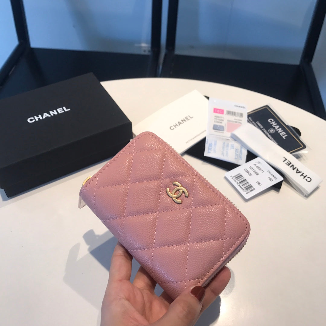 CC ZIPPED COIN BASIC PURSE 11 PEACH CALFSKIN GOLD ICON