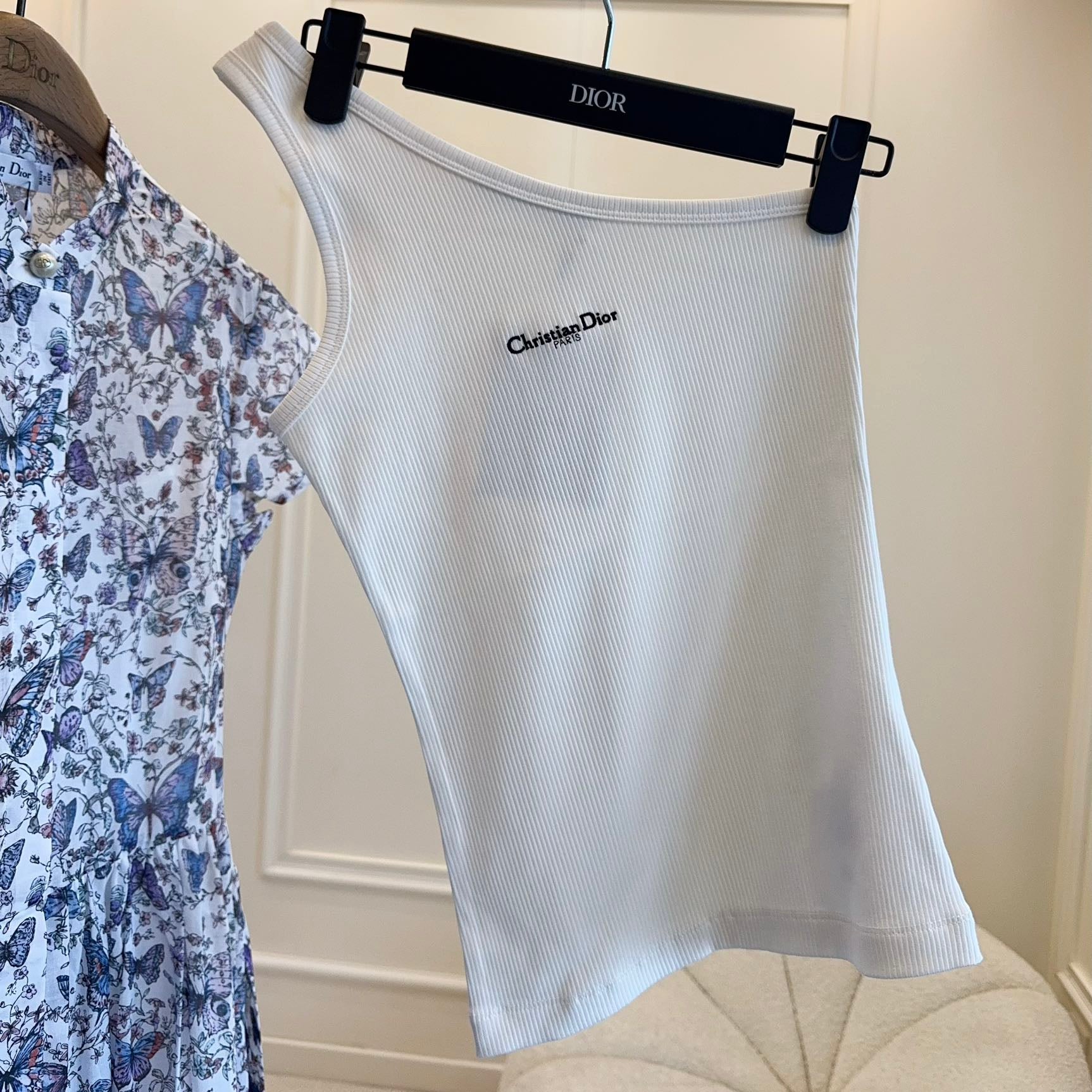 CD 2025 Asymmetrical Off-shoulder Vest White Cotton