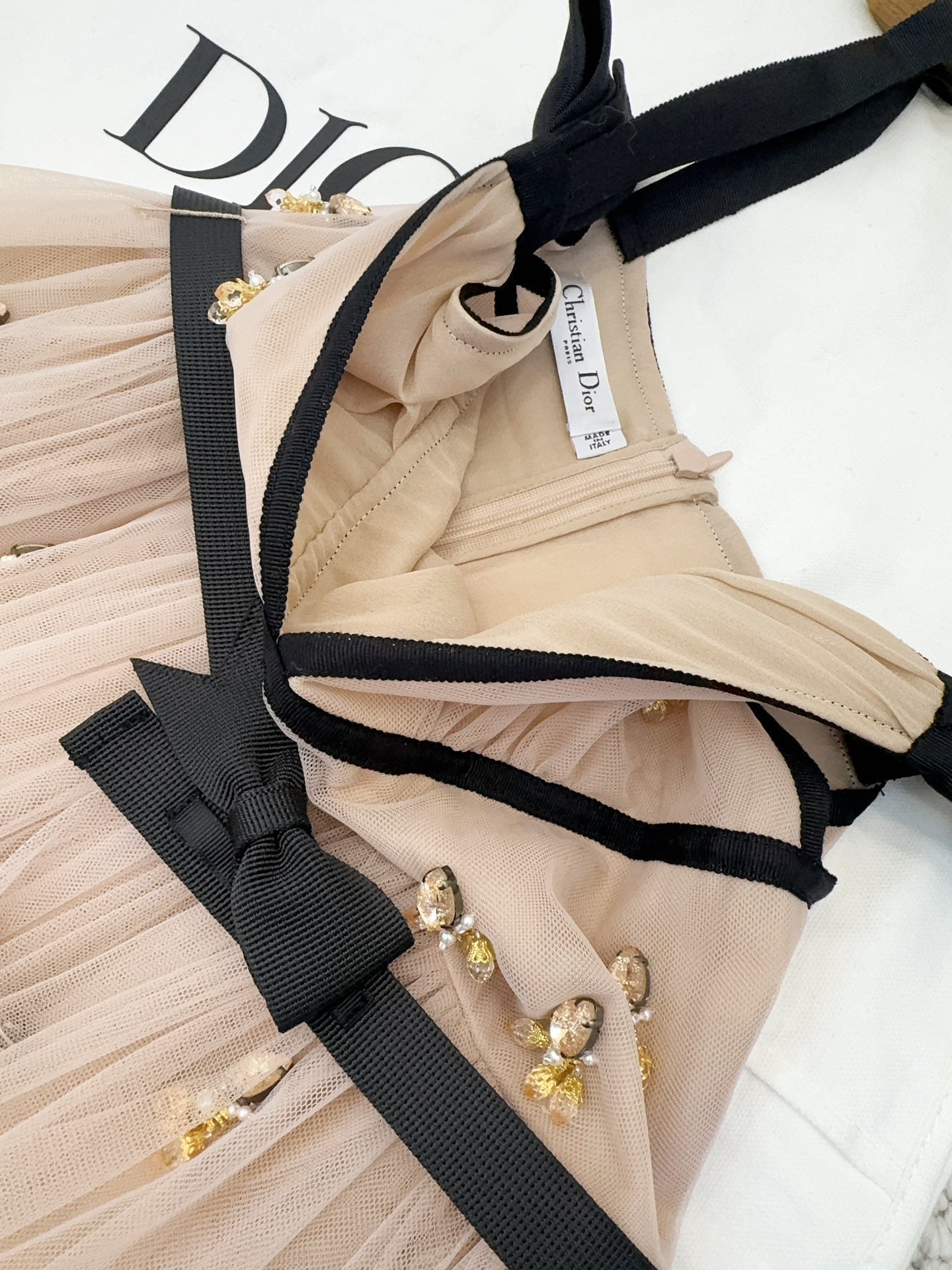 CD 2025 Beaded Dress Gray-pink Mesh Silk