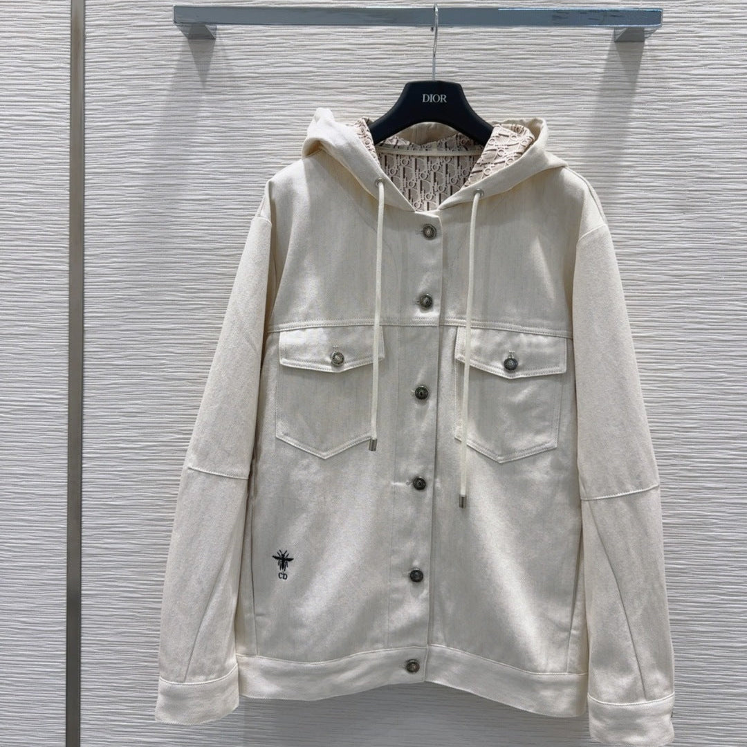 CD 2025 Hoodie Jacket Light Beige Cotton
