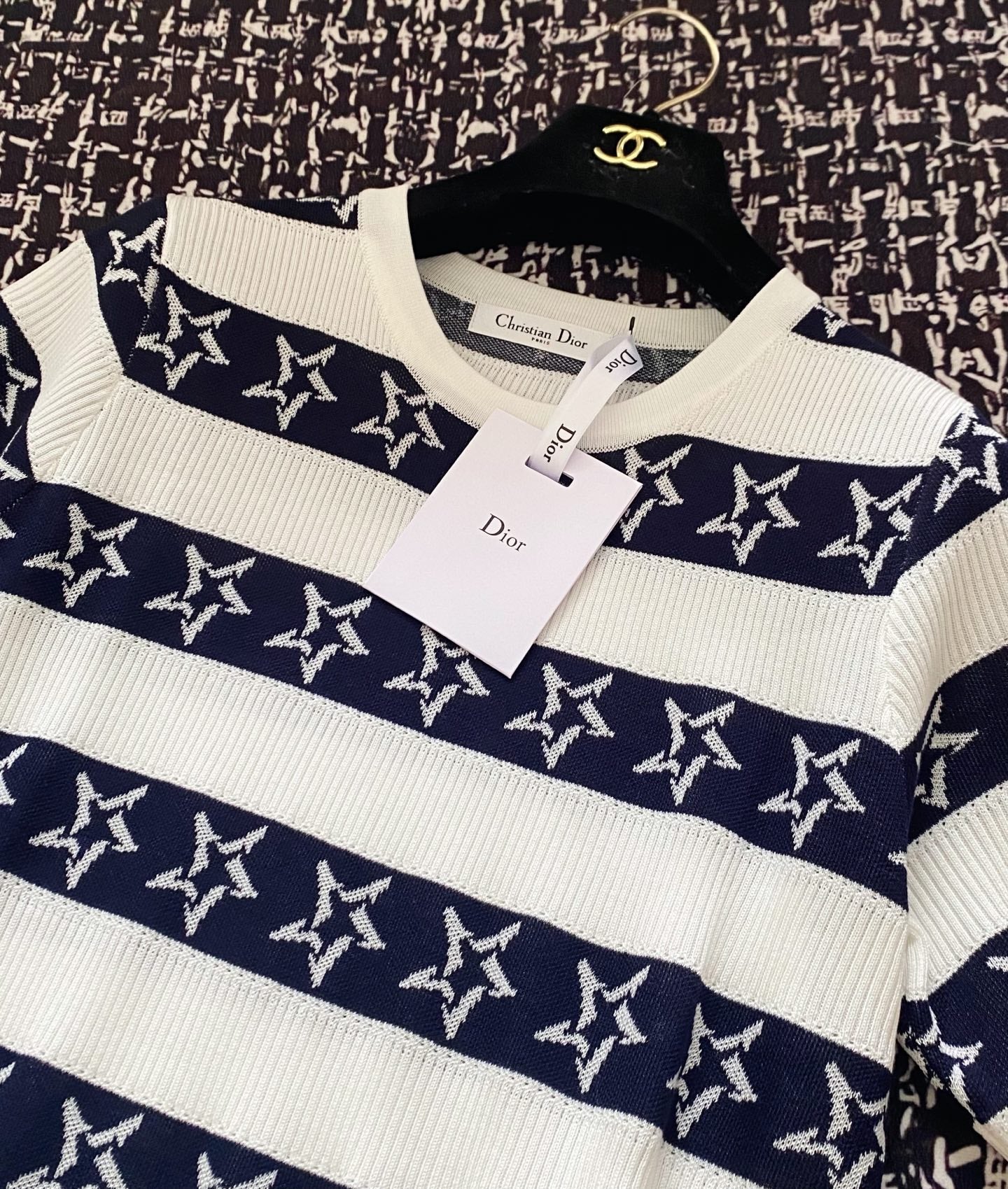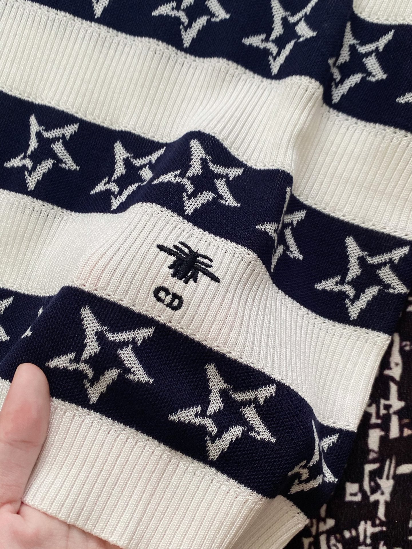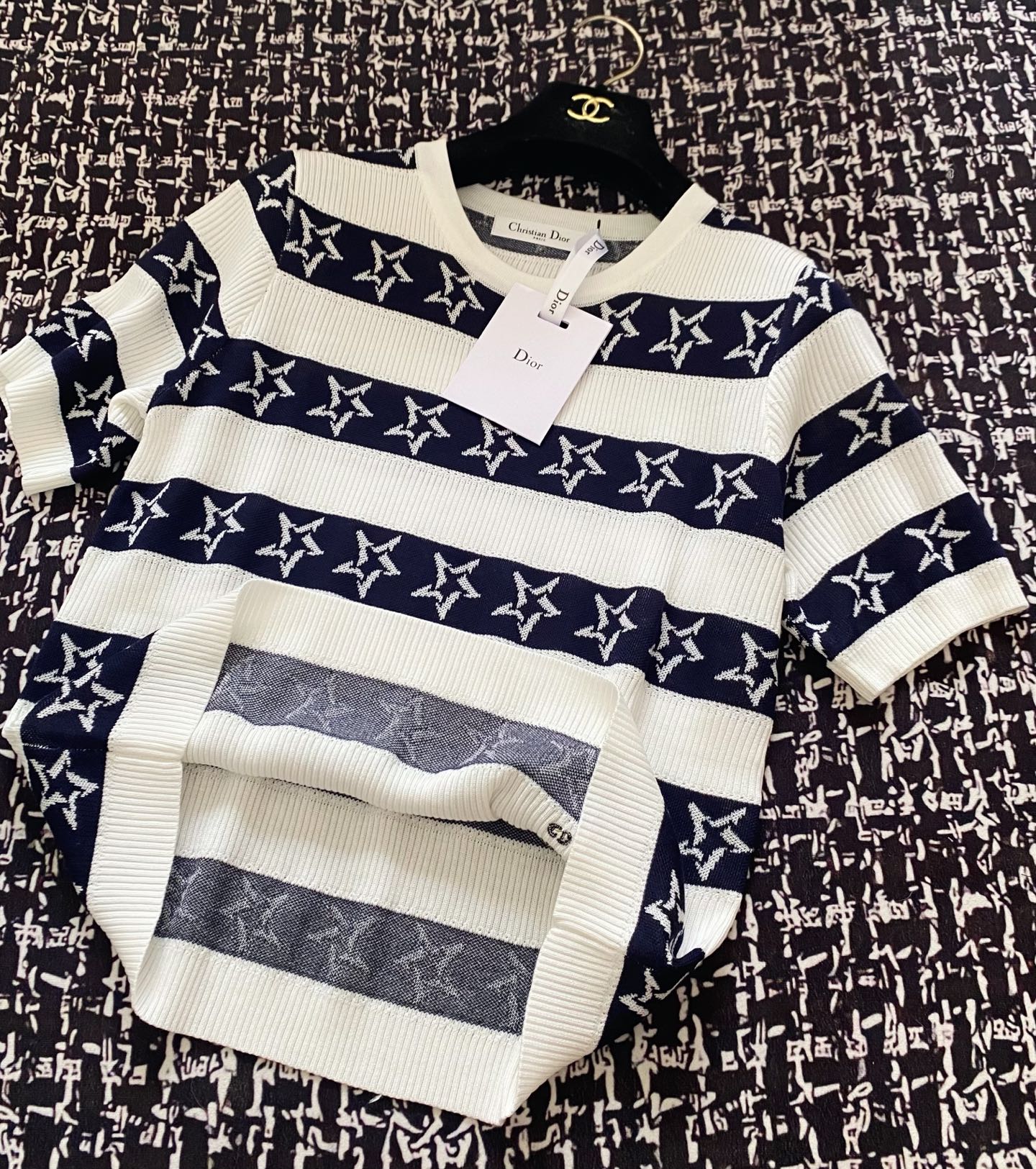 CD 2025 Striped Short-sleeved T-shirt Navy Blue White tencel 606658