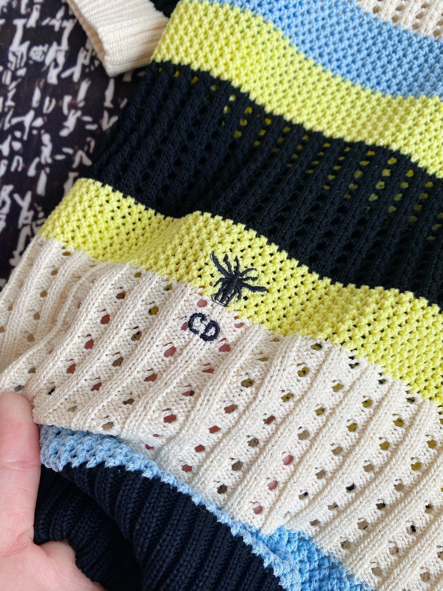 CD 25 Embroidered Short Sleeves Beige Blue Wool