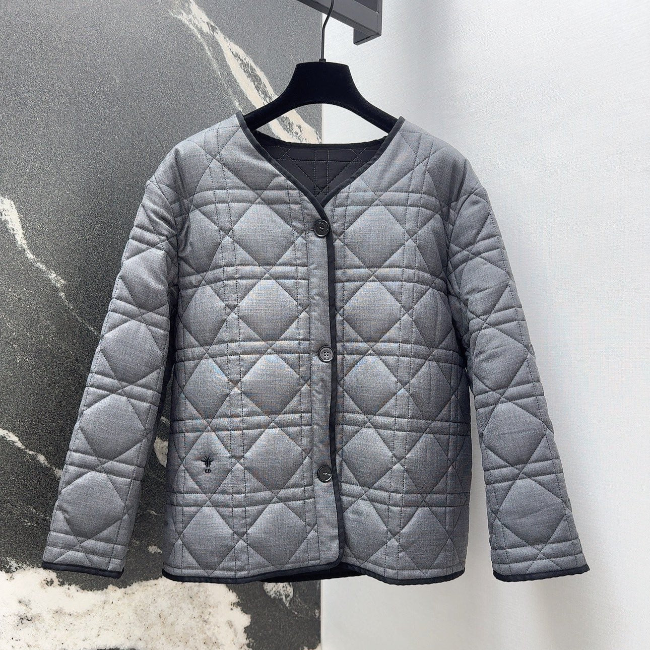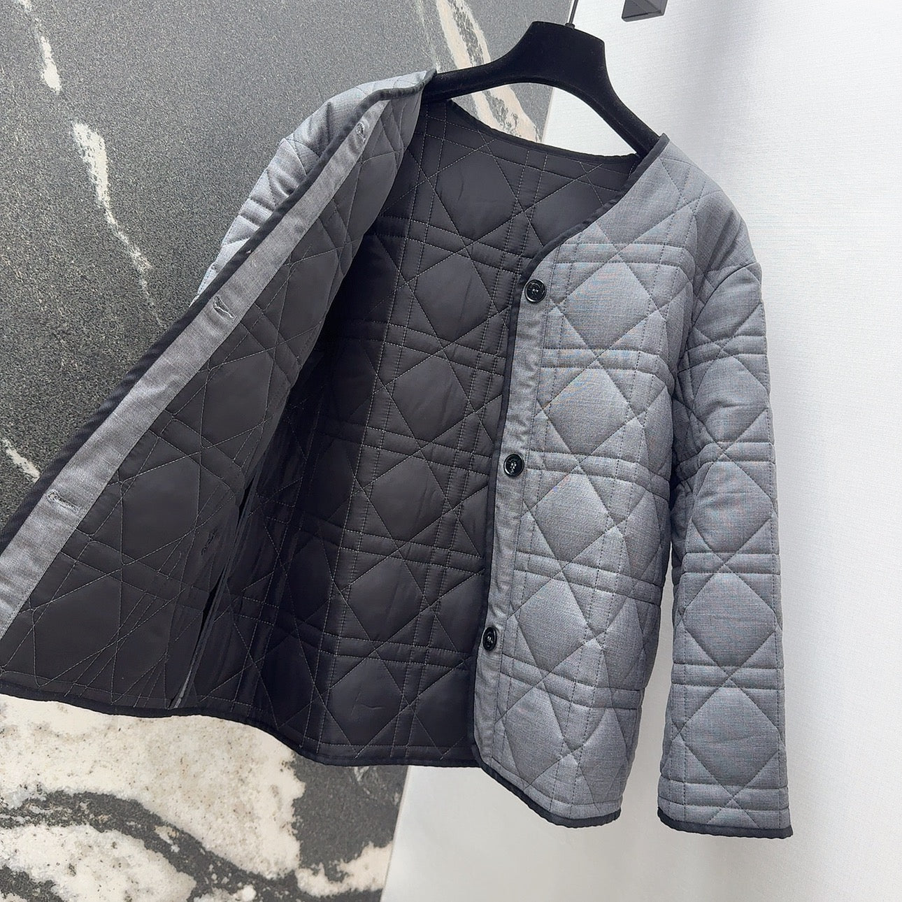 CD 25 Plaid Quilted Jacket Grey Cotton