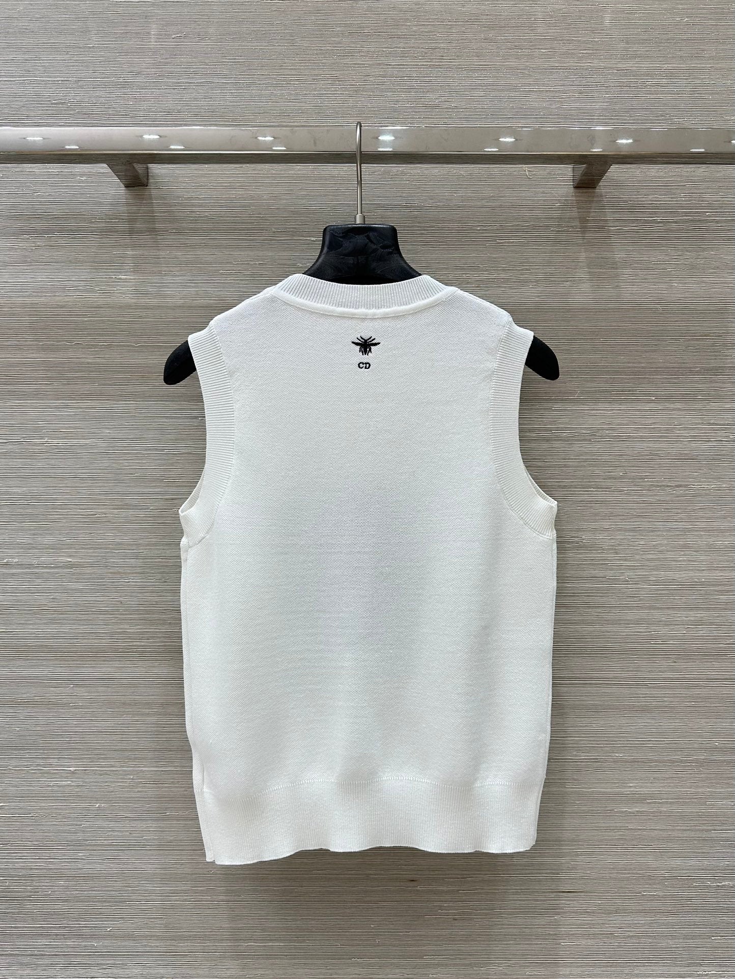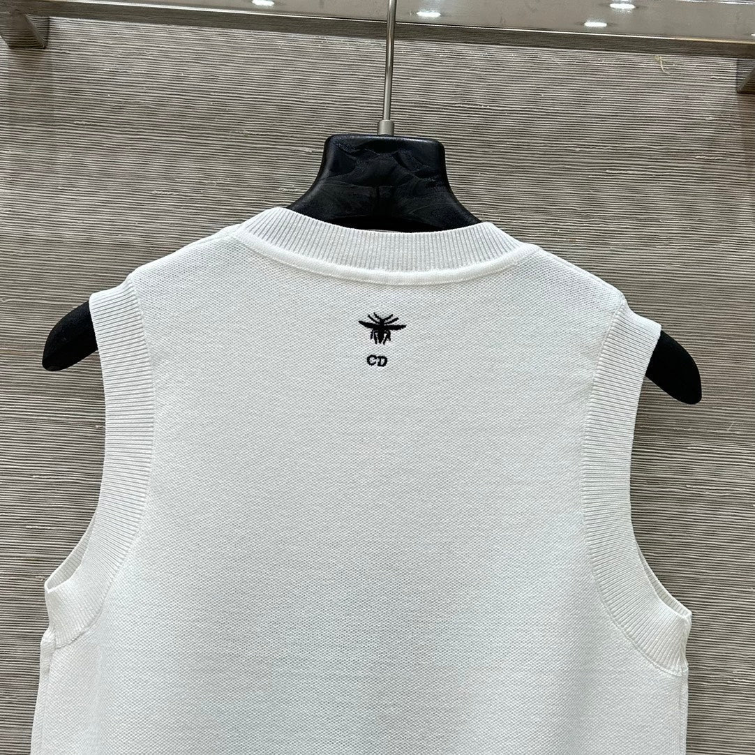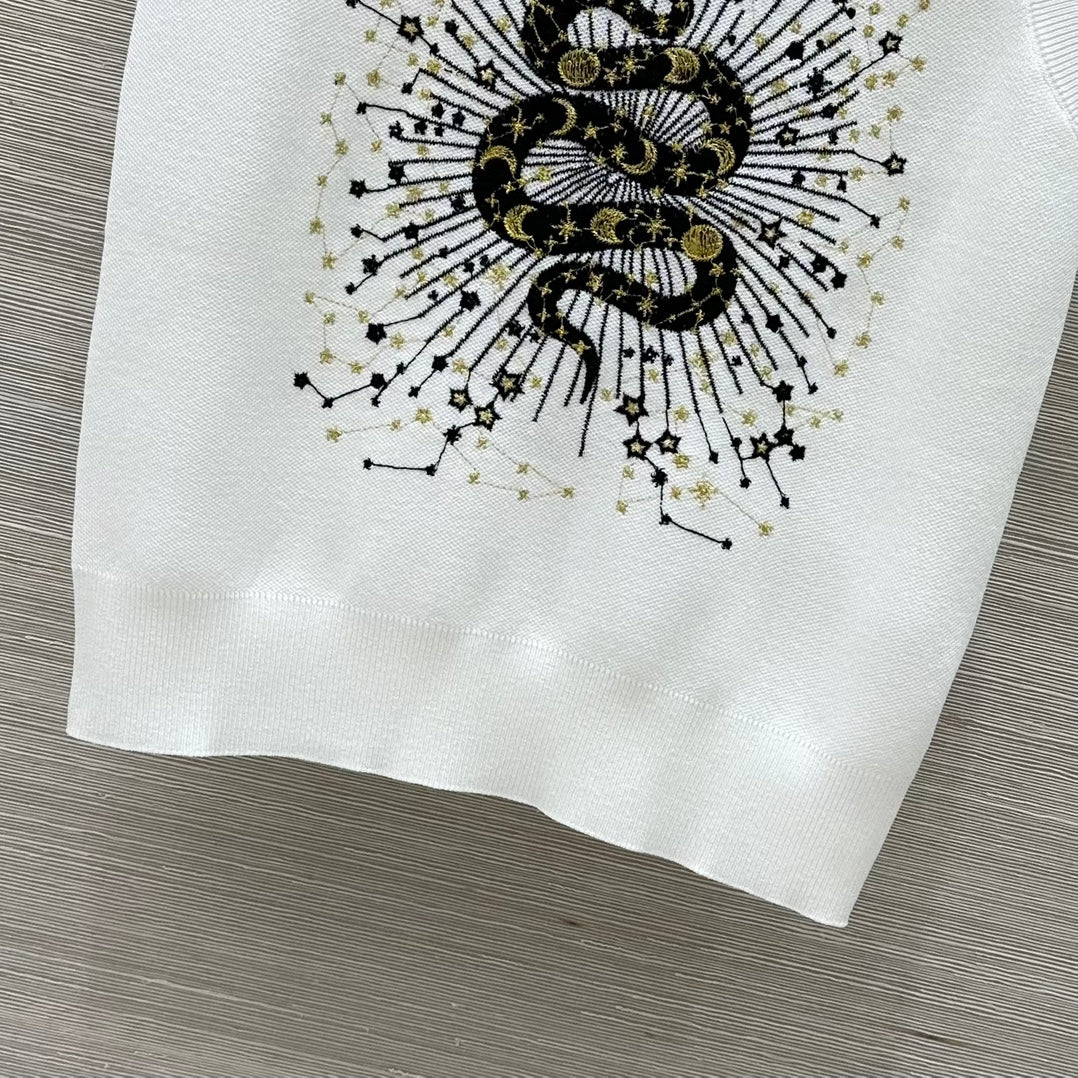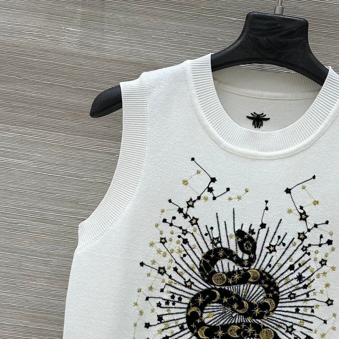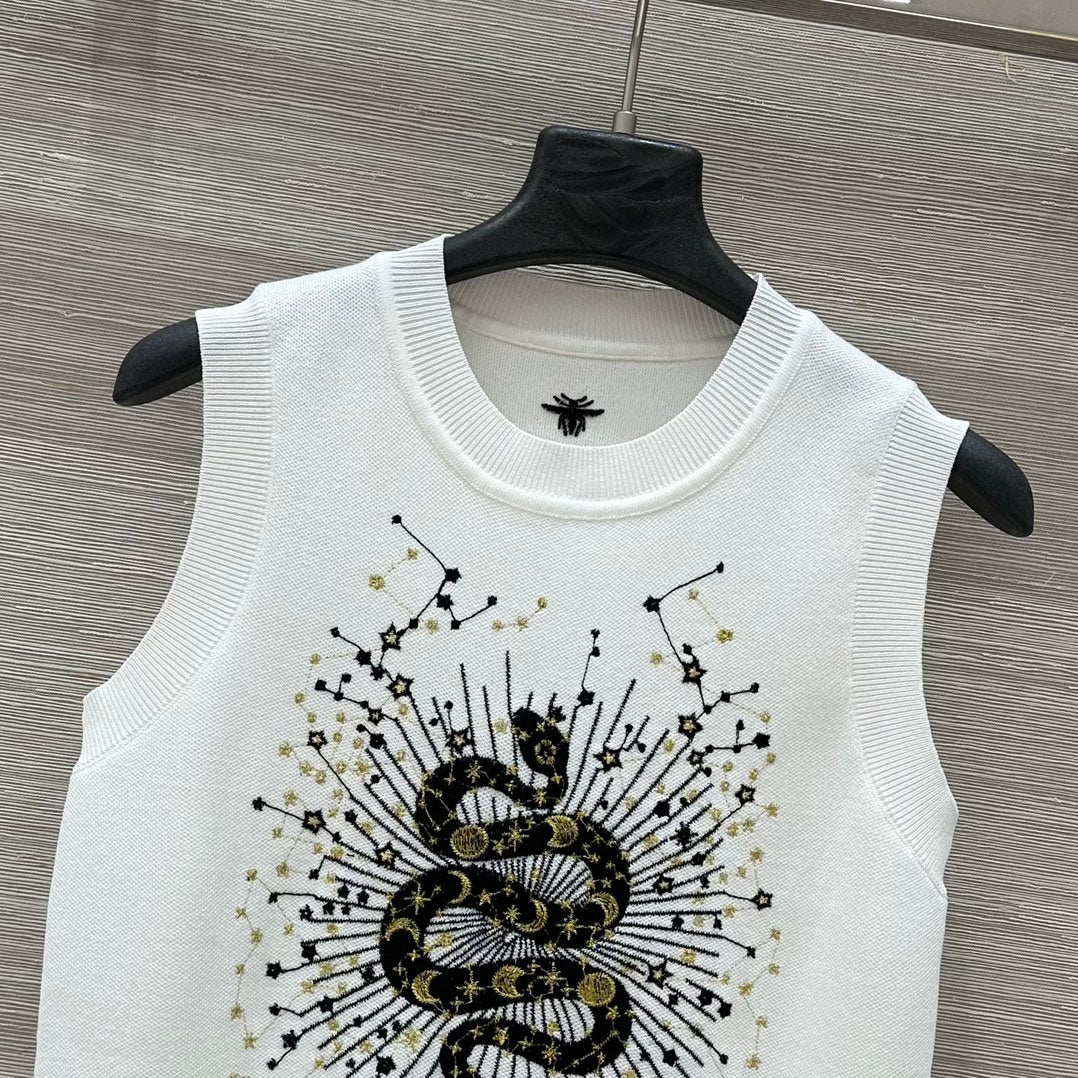 CD 25 Snake Embroidery Knitted Vest Top White Tencel Wool