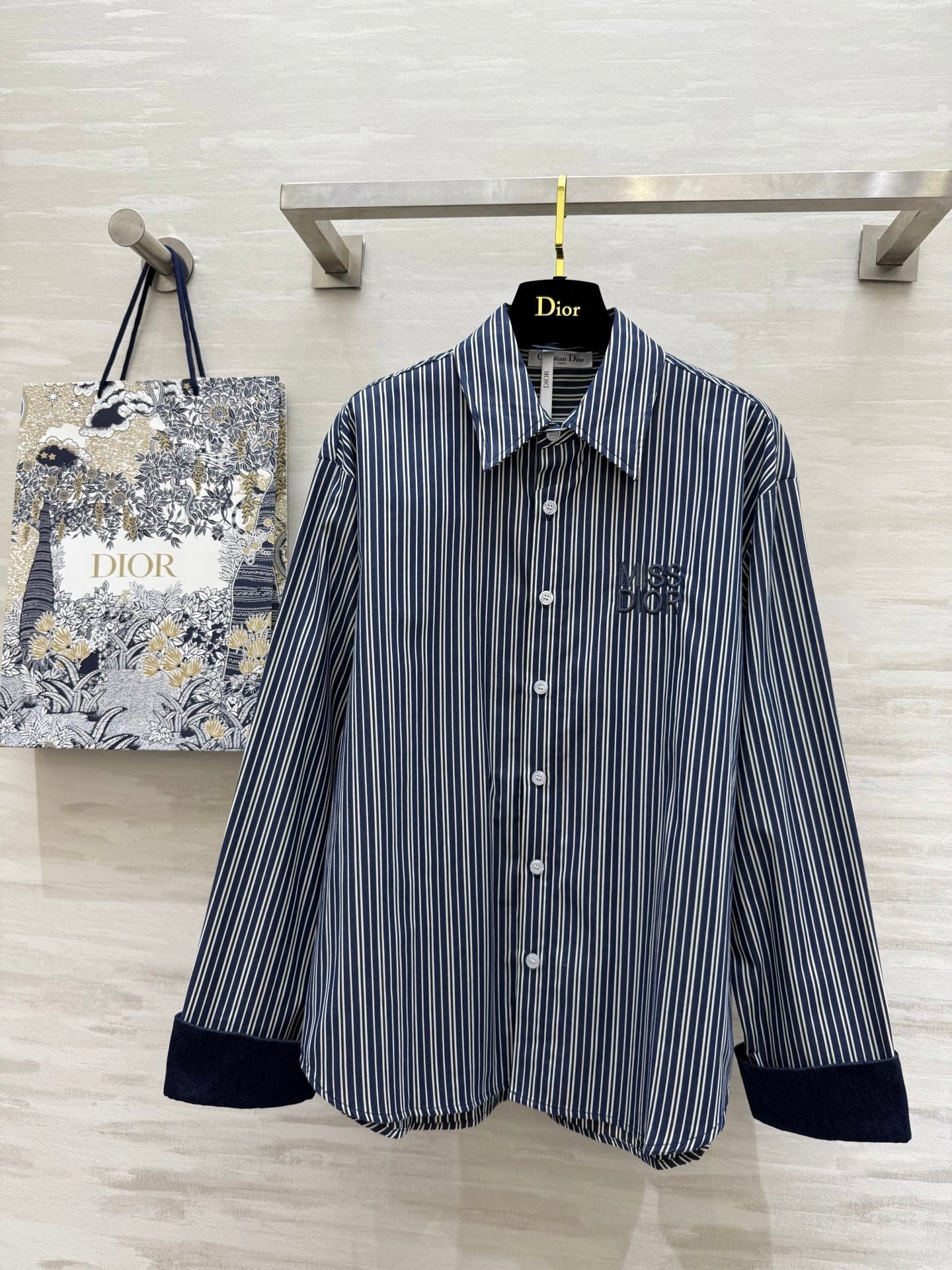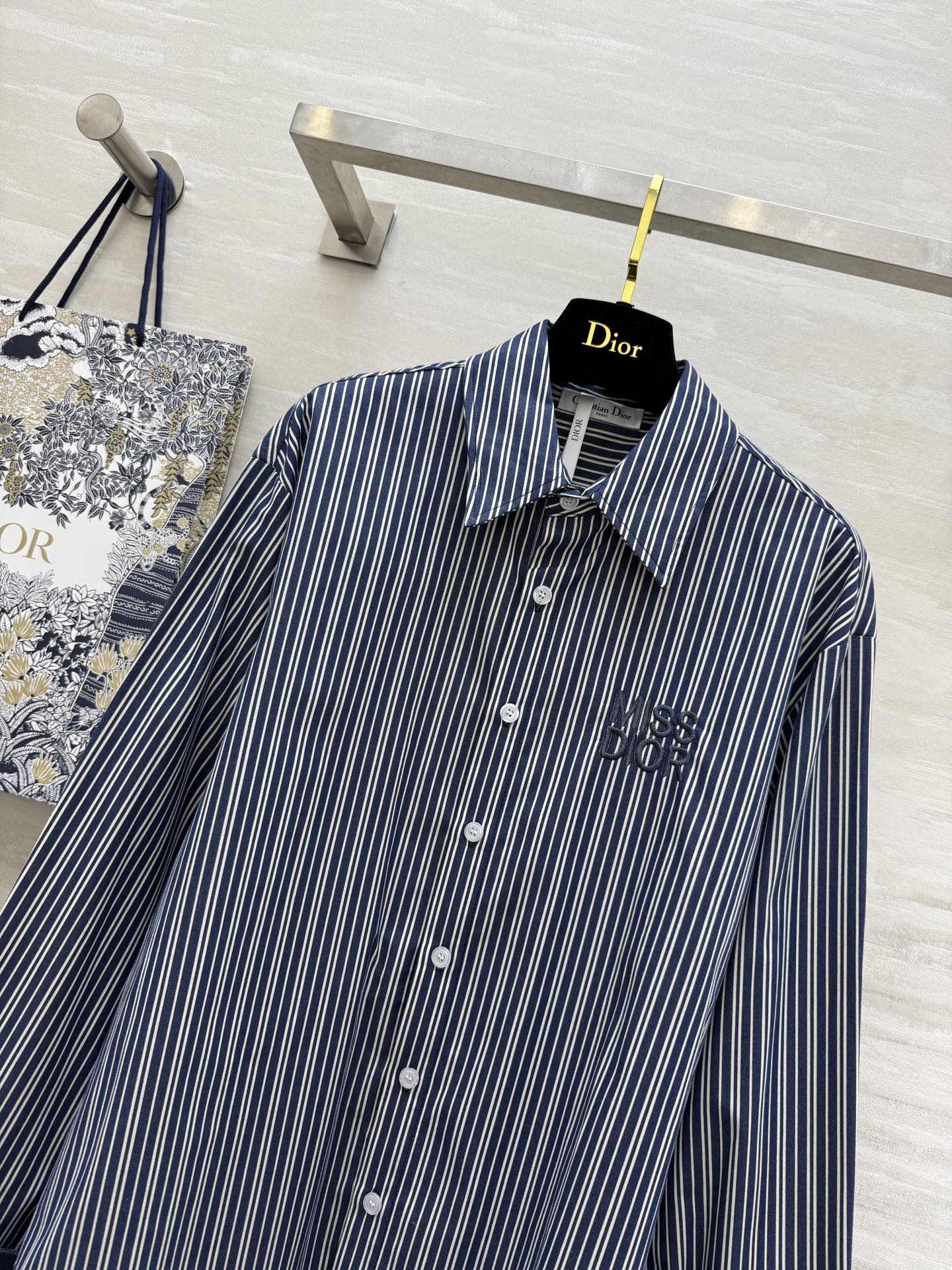 CD 25 Striped Shirt Navy Blue Cotton