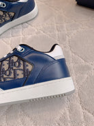 CD B27 Low-Top Sneaker White Blue Print Calfskin And Oblique Jacquard Fabric