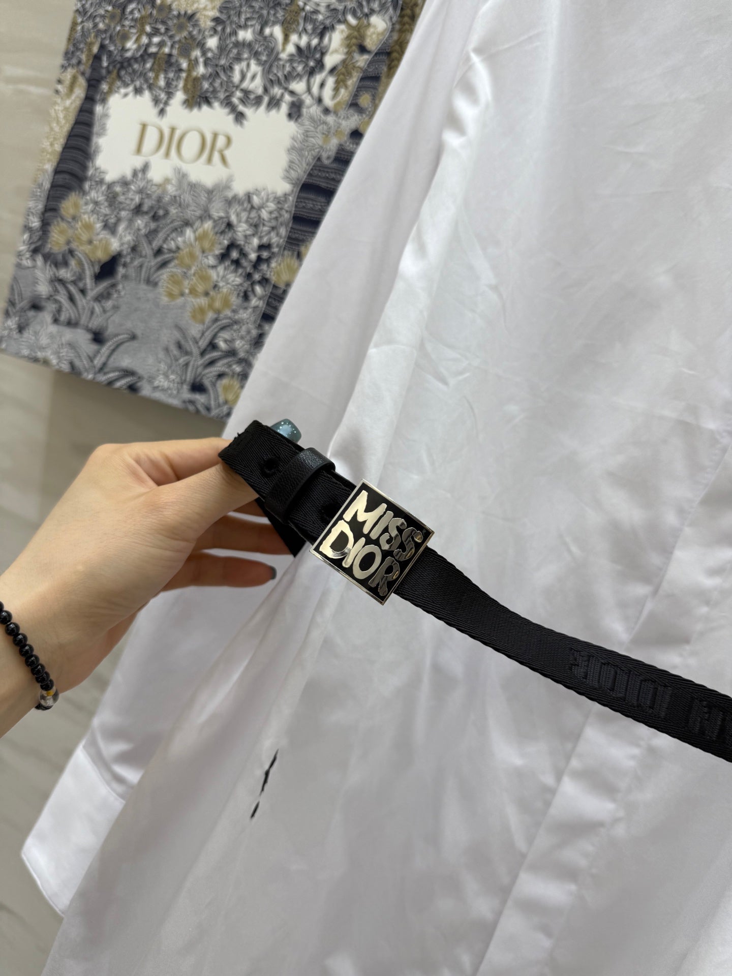 CD Belt Shirt Dress White cotton