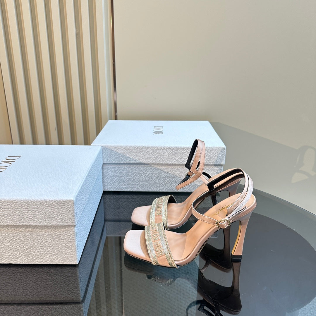CD Dway Heeled Sandal 105mm Beige Silk And Lambskin